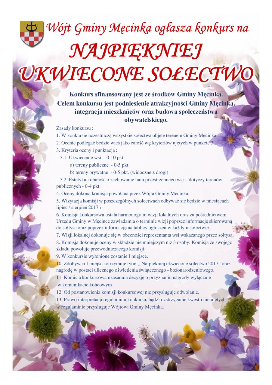 Wójt Gminy Męcinka ogłasza konkurs na najpiękniej ukwiecone sołectwo wtorek, 18, kwiecień 2017 12:17 Drukuj fUdostępnij