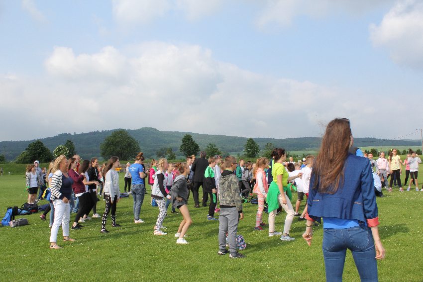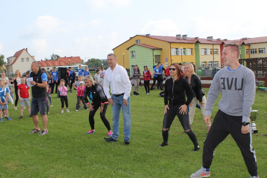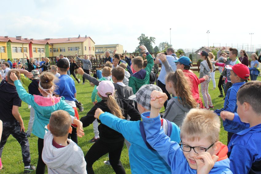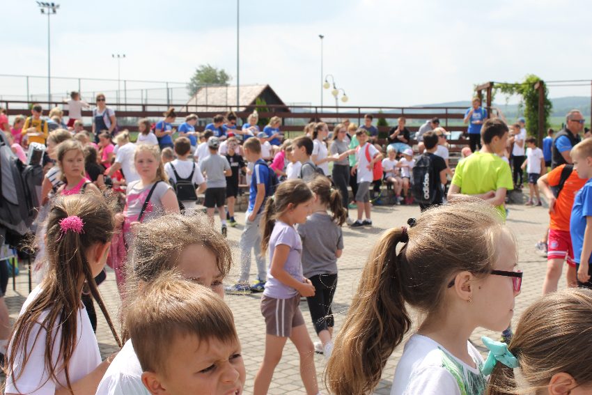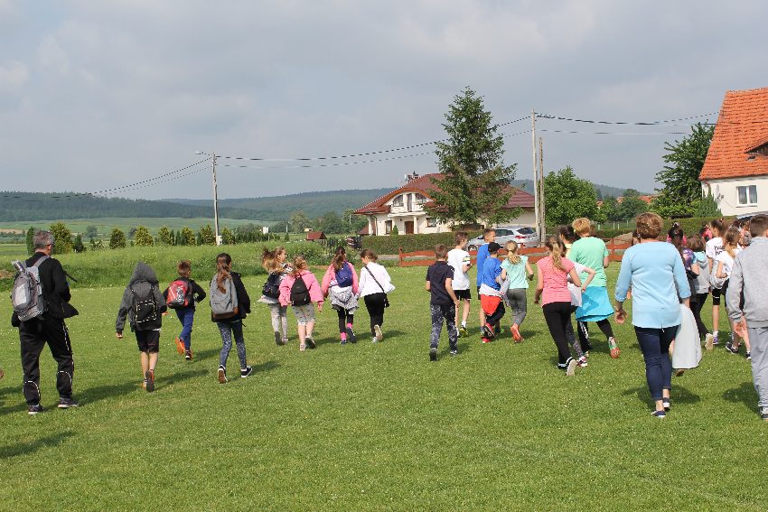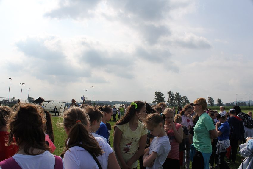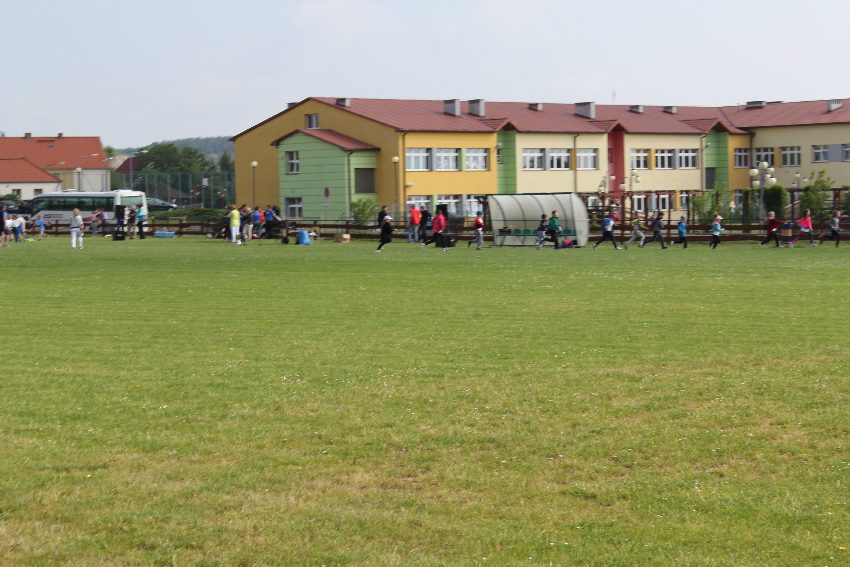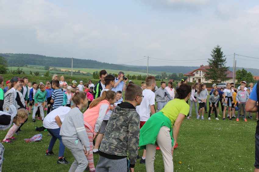 Studenci jeleniogórskiej uczelni na czele z panią Dziekan Wydziału Przyrodniczo – Technicznego dr Wiolettą Palczewską oraz dr Jackiem Falkenbergiem we współpracy z naszymi gimnazjalistami w profesjonalny sposób przygotowali zadania sportowe. Całość wydarzenia rozpoczęła rozgrzewka w postaci zumby, w której udział wzięli nie tylko dzieci, ale także nauczyciele i organizatorzy. Na mecie na uczestników czekało ognisko zorganizowane przez rodziców.