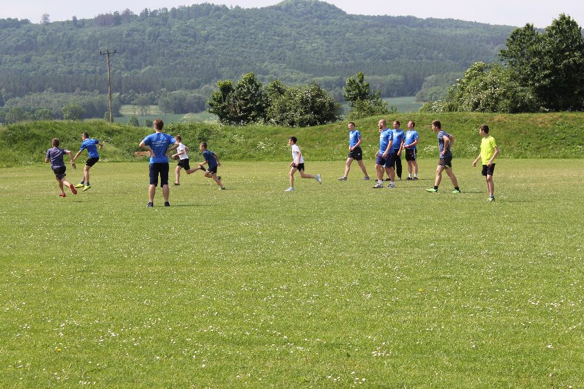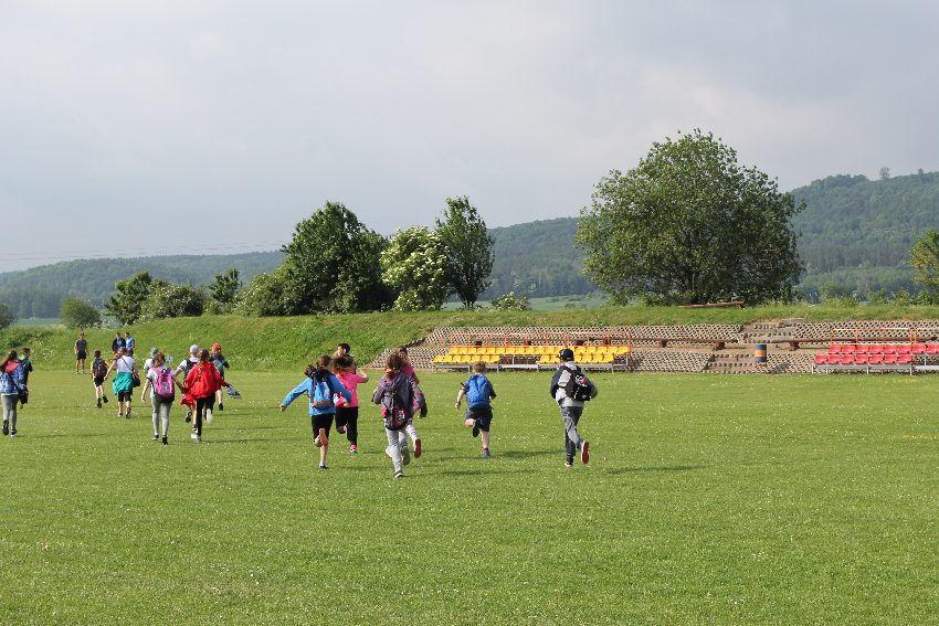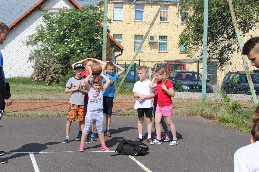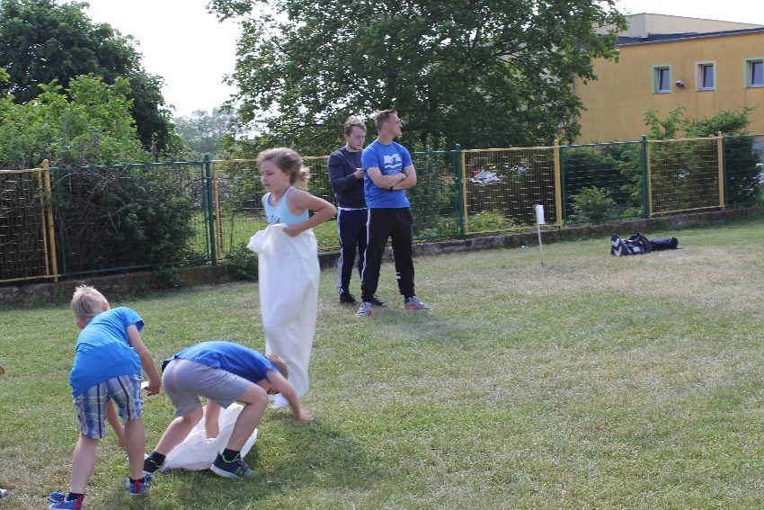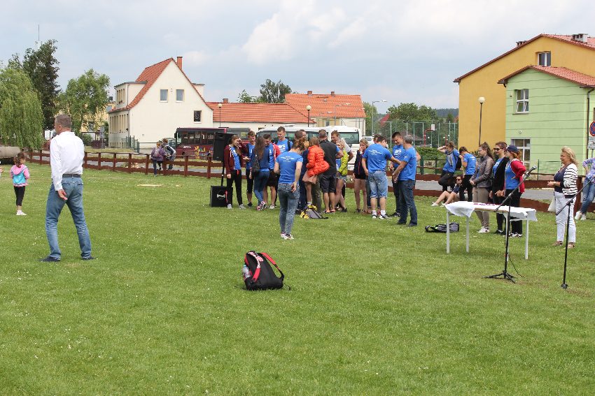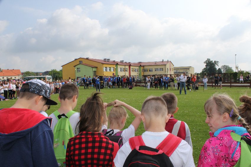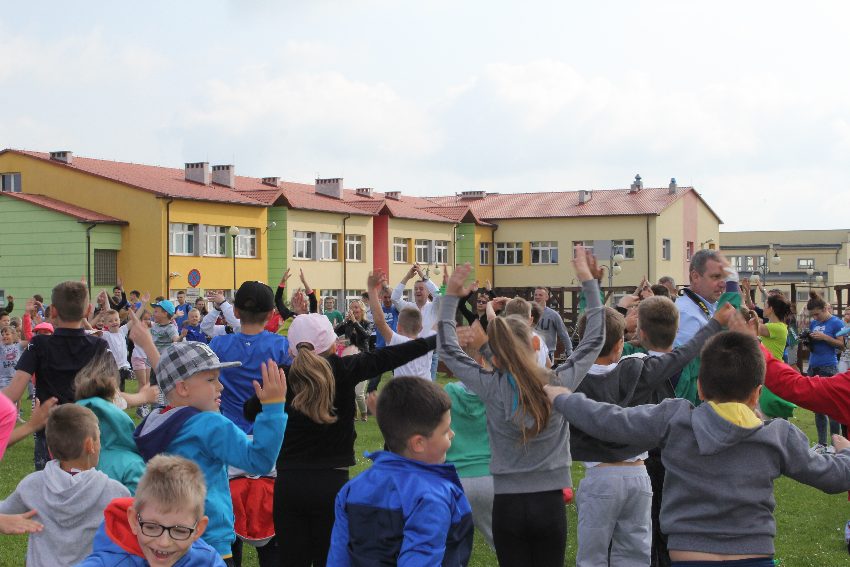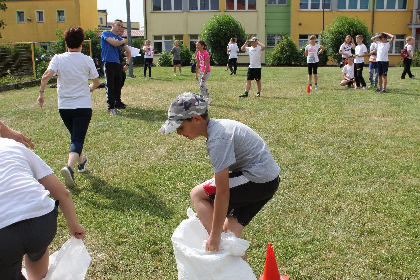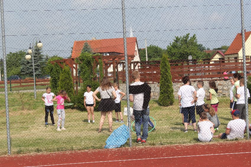 Studenci jeleniogórskiej uczelni na czele z panią Dziekan Wydziału Przyrodniczo – Technicznego dr Wiolettą Palczewską oraz dr Jackiem Falkenbergiem we współpracy z naszymi gimnazjalistami w profesjonalny sposób przygotowali zadania sportowe. Całość wydarzenia rozpoczęła rozgrzewka w postaci zumby, w której udział wzięli nie tylko dzieci, ale także nauczyciele i organizatorzy. Na mecie na uczestników czekało ognisko zorganizowane przez rodziców.