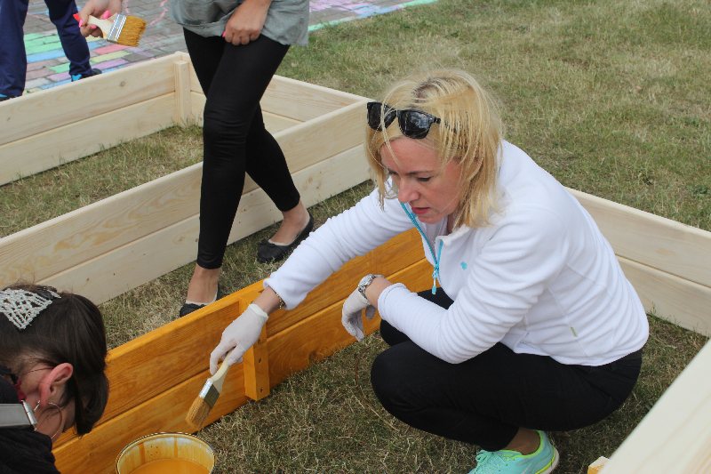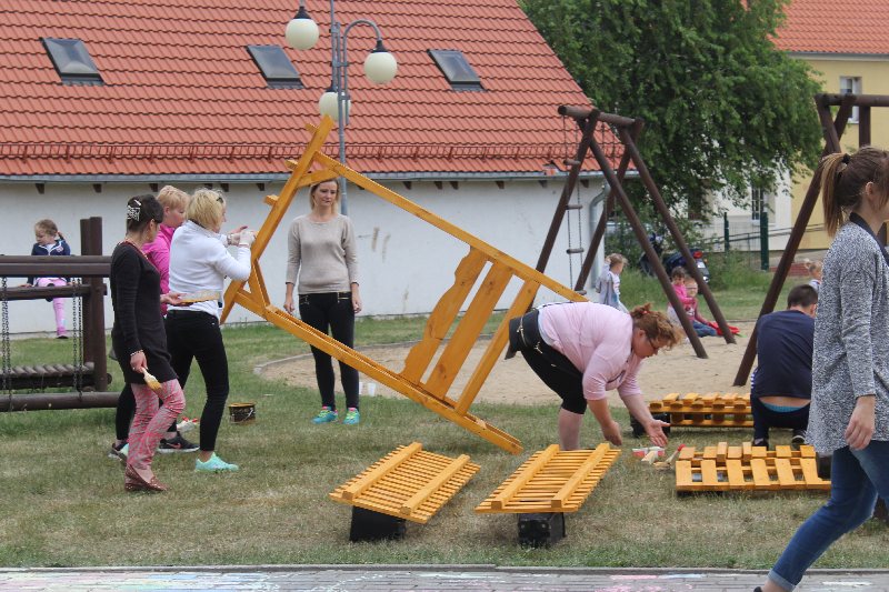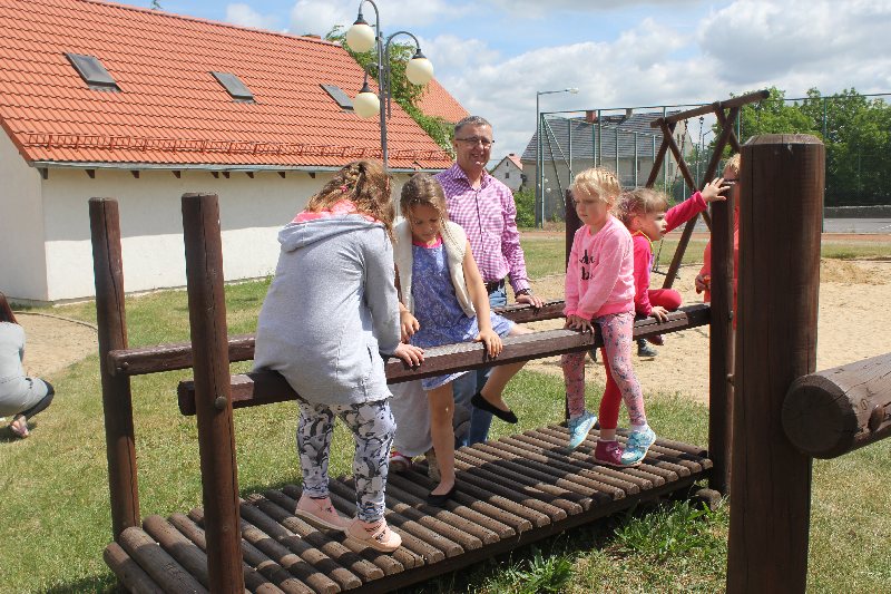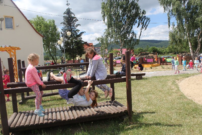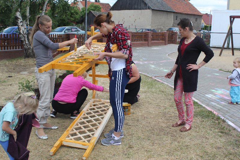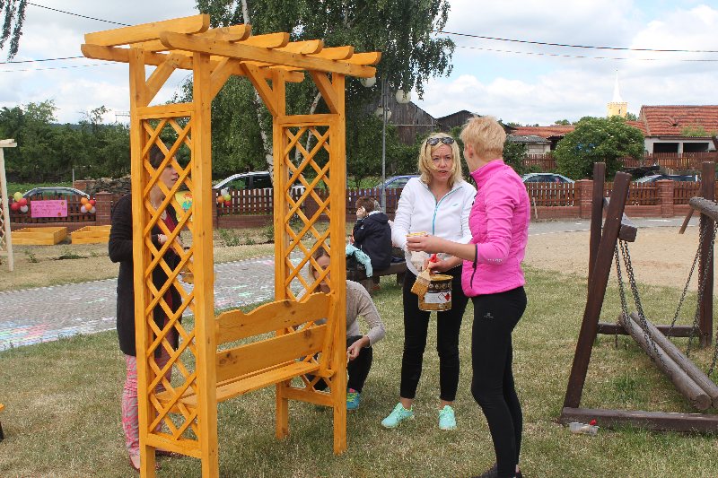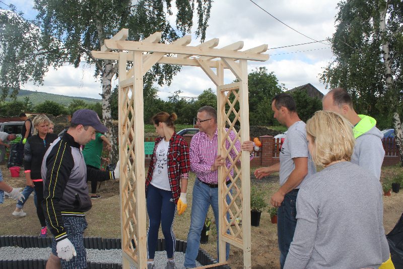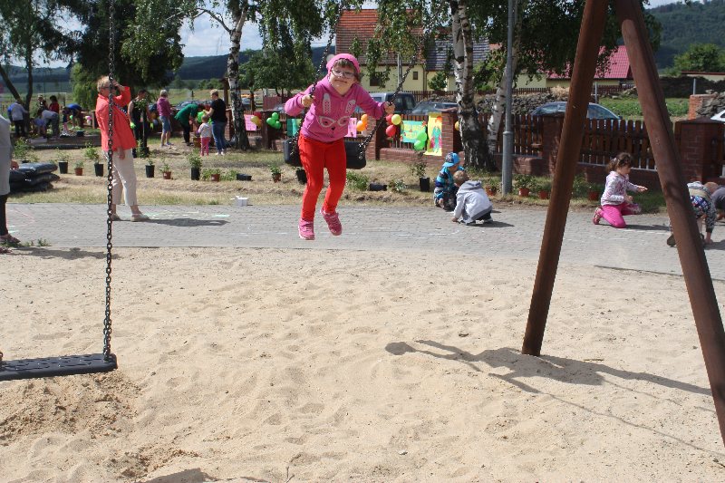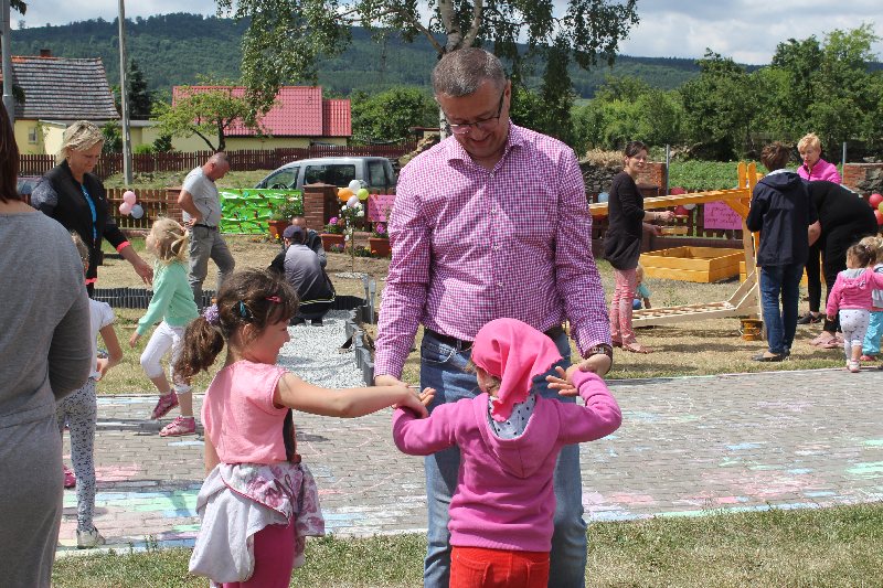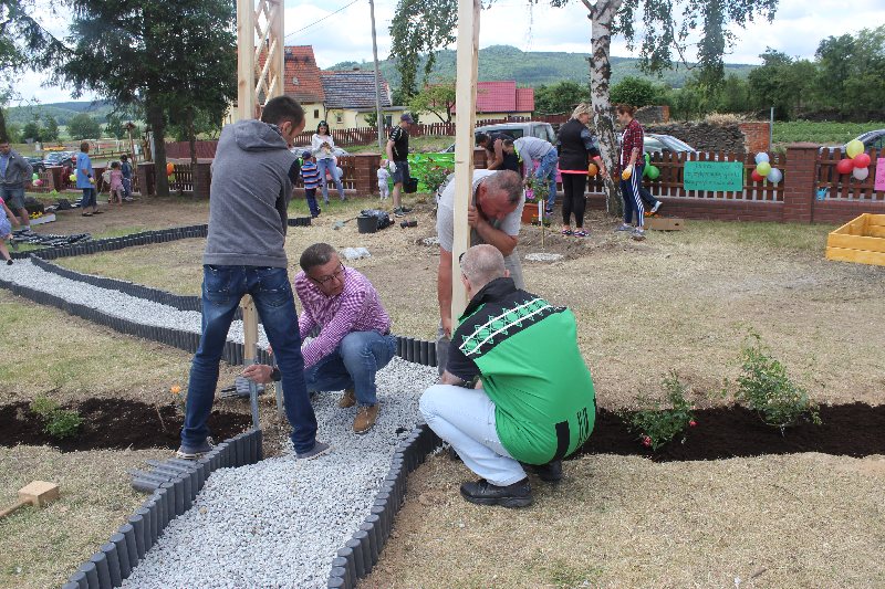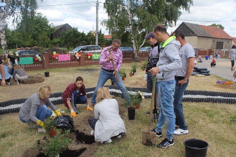 Ogród różany przy przedszkolu w Męcince wspólnym dziełem rodziców, dzieci, pracowników szkoły oraz Wójta - pomysłodawcy przedsięwzięcia.