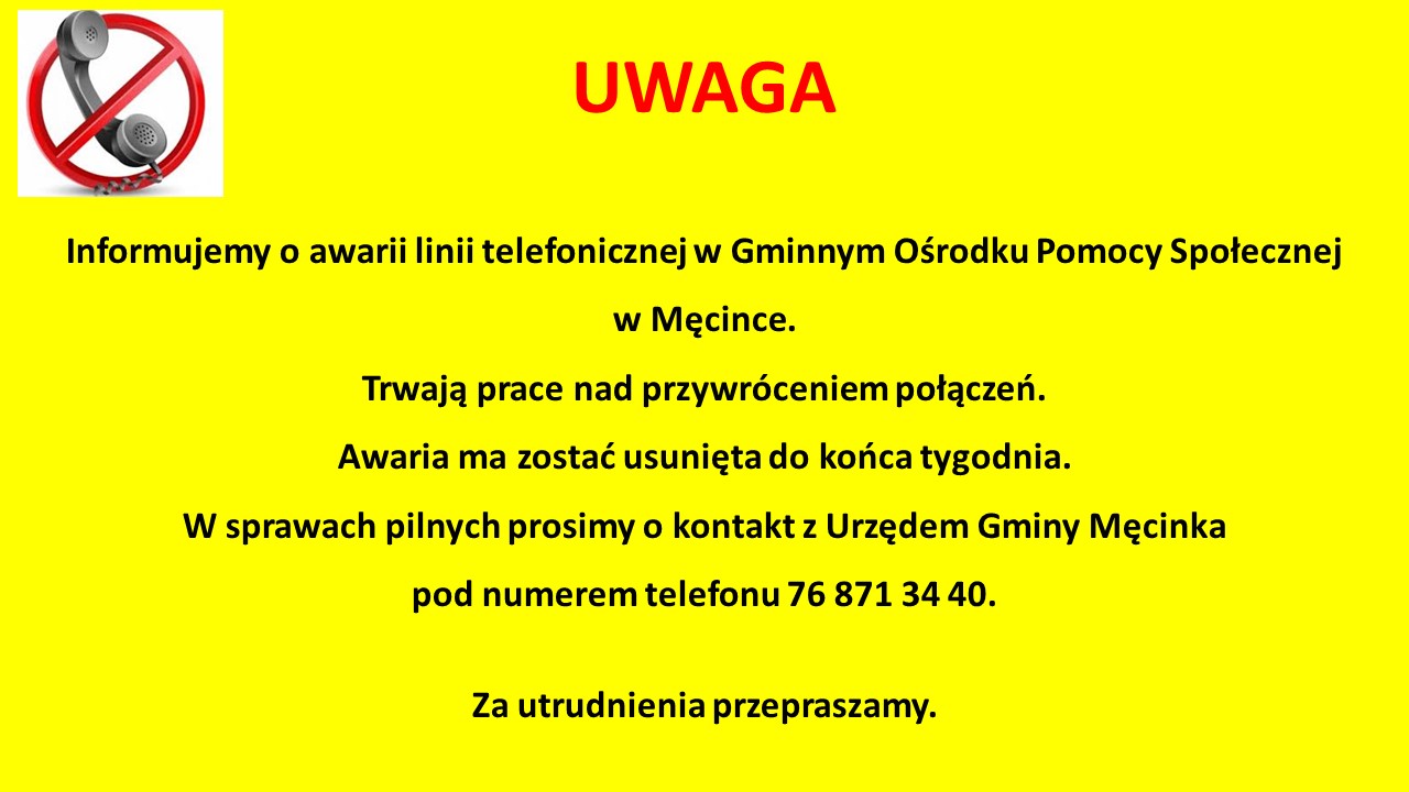 Awaria linii telefonicznej w Gminnym Ośrodku Pomocy Społecznej w Męcince środa, 12, lipiec 2017 10:42 Drukuj fUdostępnij