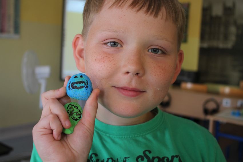 We wtorek, 4 lipca odbyły się warsztaty plastyczne w szkole. Ich celem było zapoznanie uczniów z różnymi technikami plastycznymi. Dzieci zdecydowały się na glinolepienie. Była to świetna zabawa z gliną: lepienie, formowanie, nadawanie kształtów, m. in. serca, postaci, wazoniki, swoje inicjały. Następnie wszystkie prace zostały ozdobione różnymi kolorami. Malowanie swoich prac sprawiło dzieciom dużą przyjemność. Powstała piękna wystawa rzeźb. Równie ciekawe okazało się mozaikowanie. Na przygotowanym kawałku regipsu pokrytego gipsem dzieci komponowały z kolorowych kamyków własne obrazki. Dzieci użyły swojej wyobraźni oraz wykorzystały umiejętności. Powstały przeróżne fantastyczne kolorowe kompozycje. Dzieci miały okazję odkryć swoje zdolności plastyczne. Celem tych zajęć było rozwijanie własnych uzdolnień, poznanie ciekawych technik plastycznych oraz atrakcyjne spędzenie wolnego czasu.