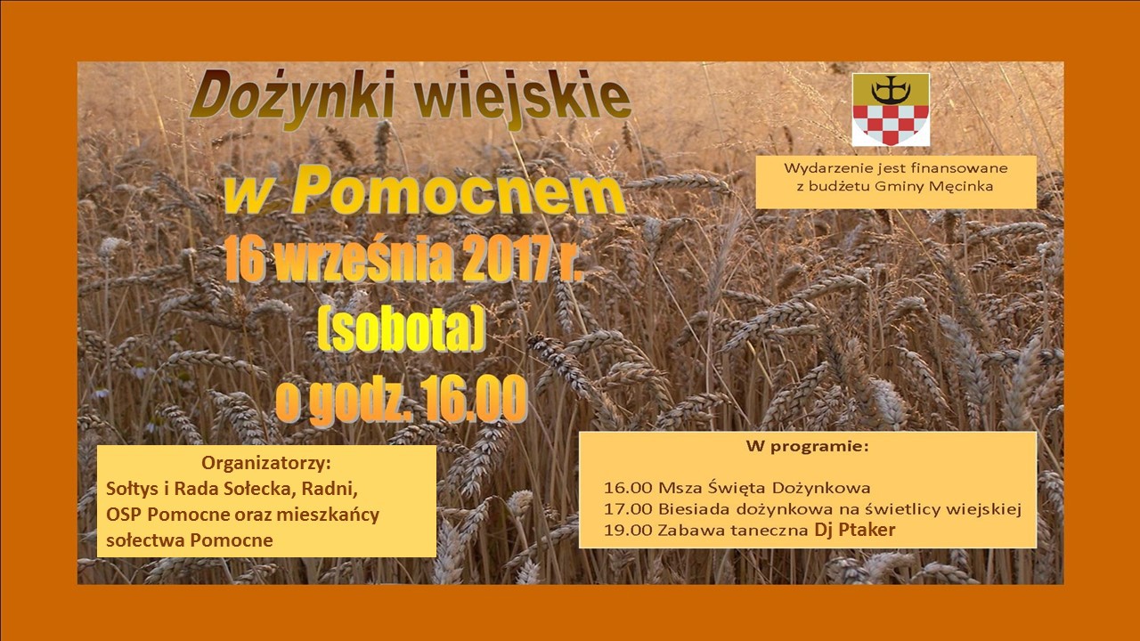 Dożynki wiejskie w Pomocnem, 16 września czwartek, 14, wrzesień 2017 14:23 Drukuj fUdostępnij Powiększ plakat (format JPG)