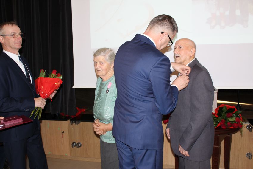 „Szanowni Jubilaci, 50-60 lat temu, nie wiedząc jak ułoży się Wasze życie - z wielką ufnością powiedzieliście sobie „tak”. To właśnie przez pryzmat tych kilkudziesięciu lat można dzisiaj powiedzieć, że warto było zaufać. Dajecie przykład jak należy żyć, jak trzeba pokonywać trudności w życiu. Przyszło Wam zmagać się z życiem w bardzo trudnych czasach. To, że dzisiaj tak wygląda nasza gmina to Wasza zasługa. To dzięki Waszej kilkudziesięcioletniej pozytywistycznej pracy. Możecie być z tego dumni. My jesteśmy. Za to wszystko Wam dziękujemy” - powiedział do Jubilatów Wójt Gminy Męcinka.