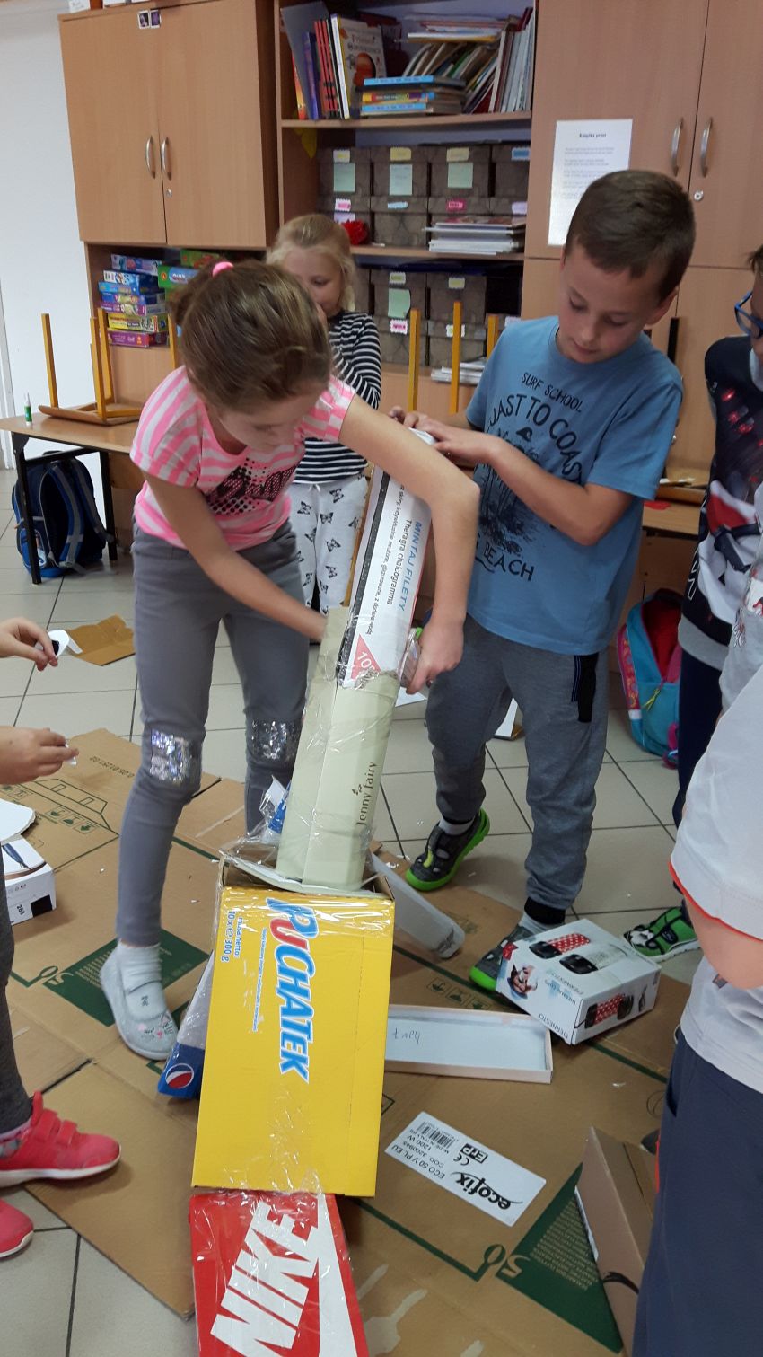 W ramach Ogólnopolskiego Tygodnia Kariery w klasie III b odbyły niecodzienne zajęcia techniczne, na których uczniowie z różnorodnych materiałów papierniczych i środków plastycznych konstruowali postaci dinozaurów. Uczniowie kreatywnie i z wielkim zaangażowaniem przystąpili do realizacji projektu. W pierwszym etapie nastąpiło planowanie, później przydział ról, a następnie najbardziej oczekiwana część, czyli tworzenie.