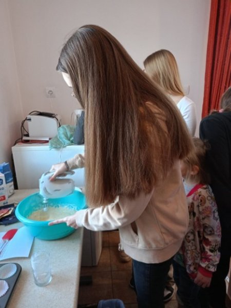 - robienie muffinek-nauka pieczenia i przekładanie waflii;