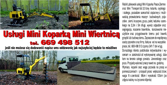 Usługi Mini Koparką Mini Wiertnicą poniedziałek, 28, maj 2018 08:35 Drukuj Powiększ ogłoszenie (format JPG)