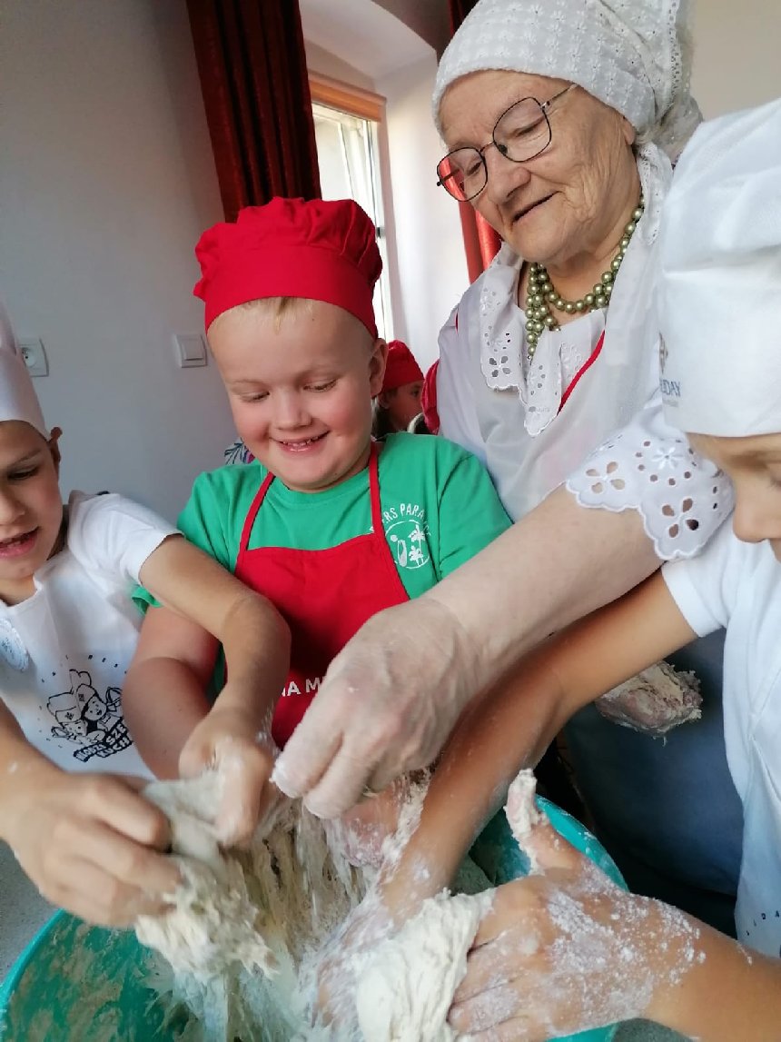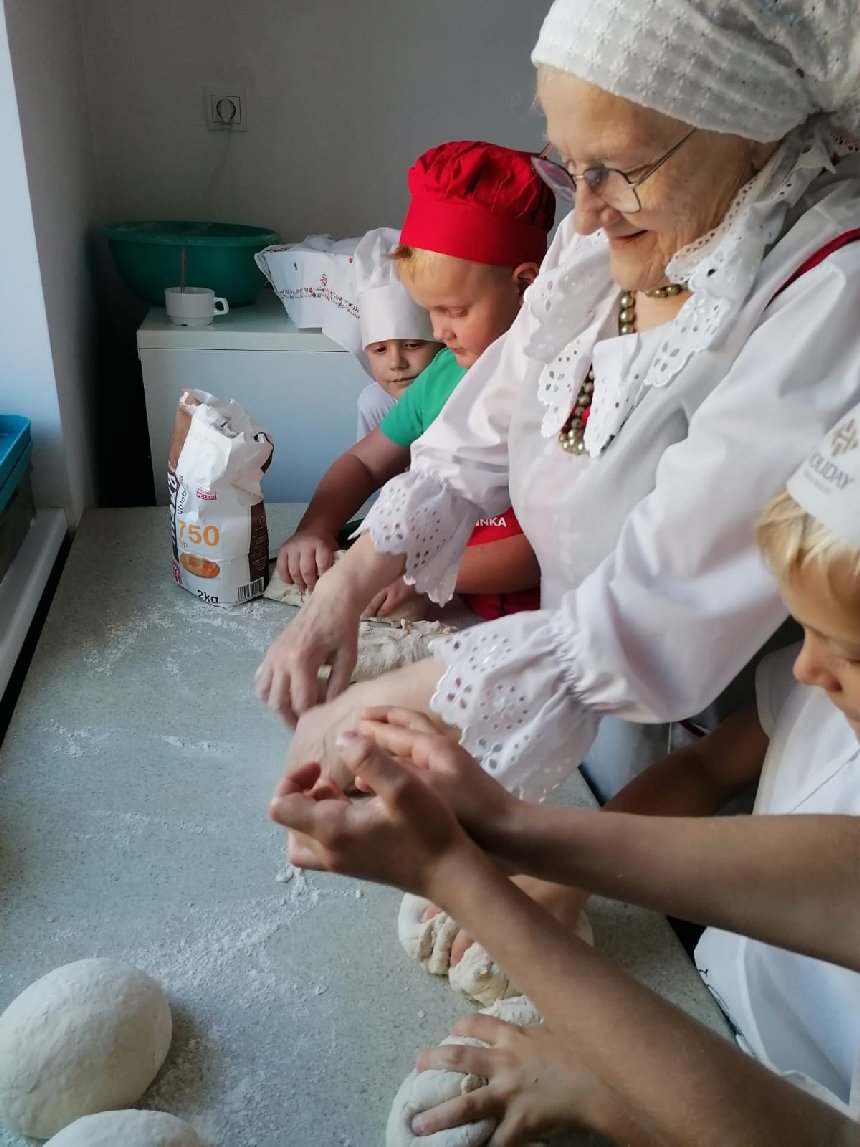 Grupa 6-latków z przedszkola w Męcince brała udział w warsztatach piekarskich, które przedszkole zorganizowało wspólnie z ZESPOŁEM FOLKLORYSTYCZNYM OJRY BIS Z MĘCINKI.