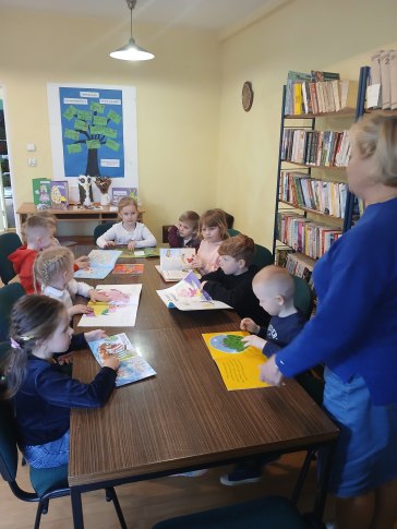 Przedszkolaki „Jabłuszka” odwiedziły bibliotekę w Pomocnem z okazji zbliżającego się Święta Książki Dla Dzieci.