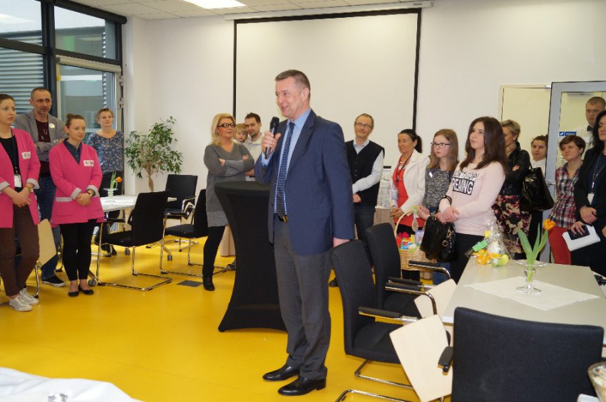 Delegacja, w skład której wchodzili wójt Mirosław Brzozowski, ks. dr Marek Kluwak, zastępca wójta Arleta Gregulska – Oksińska oraz gimnazjalistki Klaudia Malina i Karolina Uhornicka wzięła udział w spotkaniu wielkanocnym podopiecznych i pracowników kliniki. Oprócz kartek z życzeniami nasi przedstawiciele przekazali dzieciom słodycze.