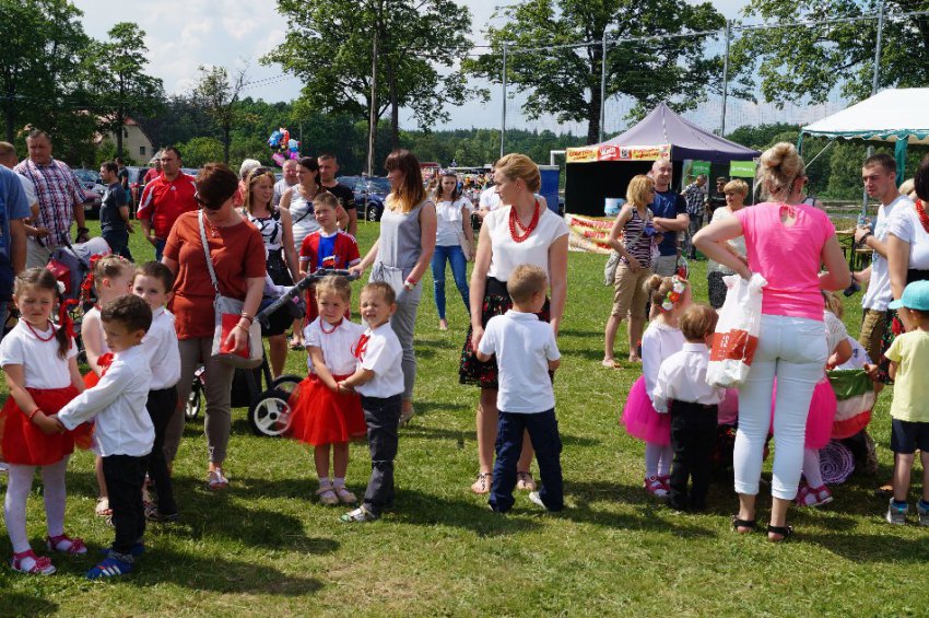 Pokazem tańców ludowych przedszkolaków z gminy Męcinka oraz uczniów klas I-III Szkoły Podstawowej w Męcince rozpoczęła się gminna uroczystość z okazji Dnia Dziecka, która odbyła się 5 czerwca 2016 r. w Muchowie. Dzieci w pięknych strojach zaprezentowały wspólnie swoje umiejętności artystyczne, co spotkało się z wielkim aplauzem zarówno rodziców, władz gminy i powiatu, nauczycieli i innych mieszkańców. Spektakl teatralny, gry, zabawy i konkursy z nagrodami, koncert telewizyjnej DJ Miki, pokaz tresury psa Karkonoskiej Grupy GOPR, ognisko oraz zjeżdżalnie i łódki to najważniejsze atrakcje, które zapewnił główny organizator wydarzenia Wójt Gminy Męcinka. „Impreza zorganizowana została dzięki bardzo dobrej współpracy i zaangażowaniu wielu mieszkańców Muchowa na czele z panią sołtys Janiną Porębską i radą sołecką. Za tę współpracę i życzliwość w imieniu dzieci z naszej gminy dziękuję” – podkreśla wójt.
