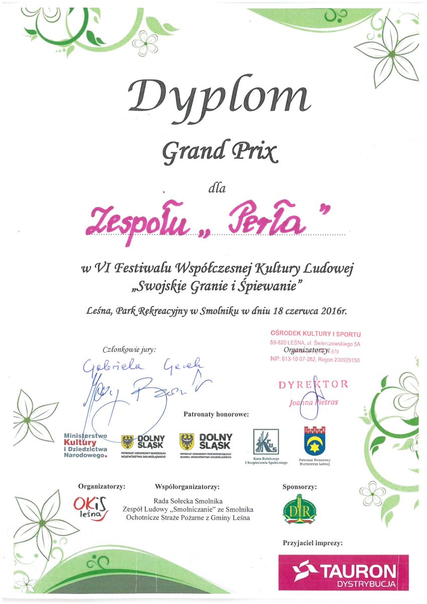 18 czerwca zespół „Perła” z Przybyłowic, wziął udział w VI Festiwalu Współczesnej Kultury Ludowej „Swojskie Granie i Śpiewanie” w Leśnej. Festiwal miał charakter konkursu a prowadziła go dziennikarka Radia Wrocław – Małgorzata Majeran – Kokott. „Perła” rywalizowała z 18 zespołami wybranymi z dwóch województw – lubuskiego i dolnośląskiego. Nasz zespół wyśpiewał Grand Prix tej imprezy i jest bardzo dumny, że po raz kolejny godnie zaprezentował naszą gminę.