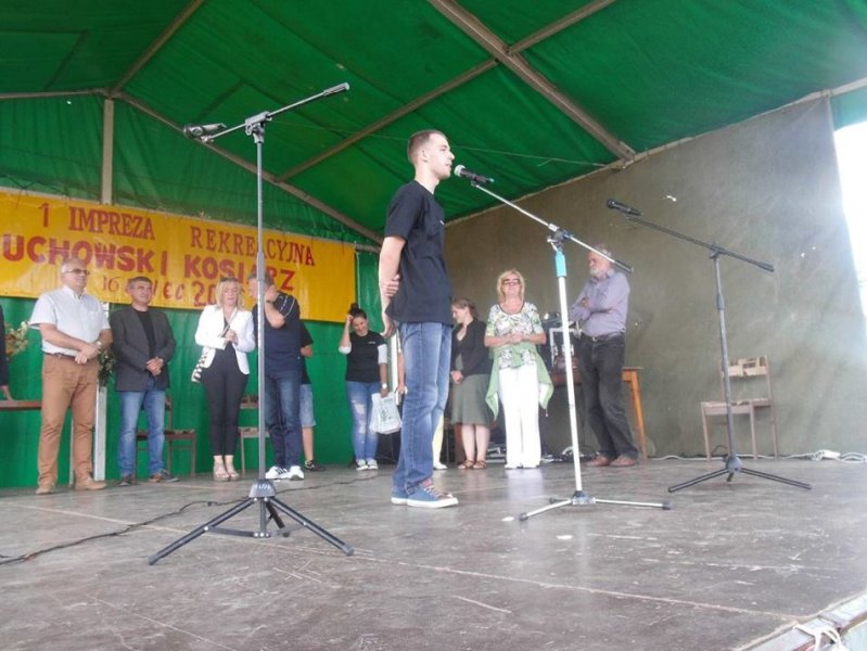 W dniu 16 lipca 2016 na boisku wiejskim w Muchowie odbyła się 1. Impreza Rekreacyjna ,,Muchowski Kosiarz” przygotowana w całości przez mieszkańców, która rozpoczęła się mszą świętą polową celebrowaną przez proboszcza parafii Pomocne, ks. Marka Lacha. Następnie otwarcia dokonała sołtys p. Janina Porębska. Do konkursu koszenia łąki udostępnionej przez p. Marię Chruściel przystąpiło 9 zawodników w tym dwie panie. Nad konkursem koszenia łąki czuwali sędziowie w składzie: p. Grzegorz Urbanowski – radny powiatu jaworskiego, p. Zbigniew Tusiński – prezes RSP pomocne, p. Zdzisław Sapieło – mieszkaniec Muchowa, wieloletni sołtys. Gdy kosiarze kosili trawę do gry terenowej przygotowała się młodzież z naszej wsi, którą nadzorował Jakub Mazur, a małe dzieci pod kierunkiem Magdaleny Stańczak rysowały, malowały i były malowane otrzymując drobne upominki. Po zakończeniu koszenia wszyscy zebrali się przy scenie i pod namiotem aby posłuchać występu strażaczek ,,Iskierki” z OSP Pomocne, zespołu ludowego ,,Chrośliczanie” z Chroślic i obejrzeć występ młodzieży z zespołu ,,K-Dance”, w składzie: Kamila i Aleksander Orda z Muchowa i Miłosz Nawara z Piotrowic.