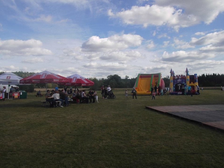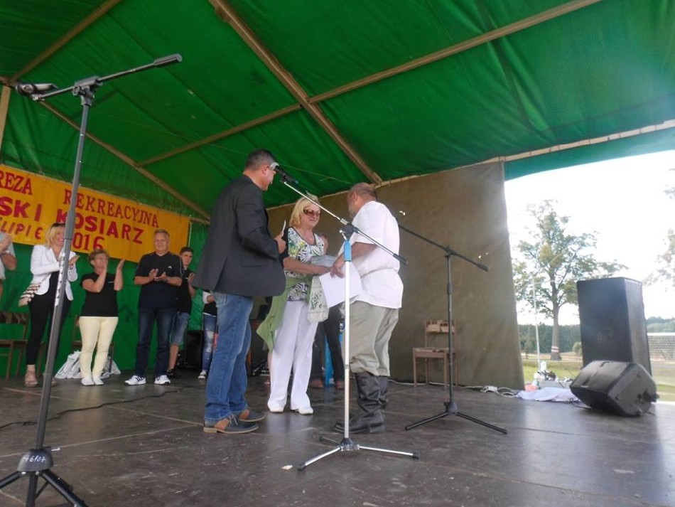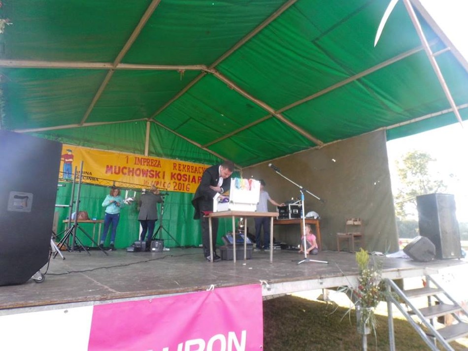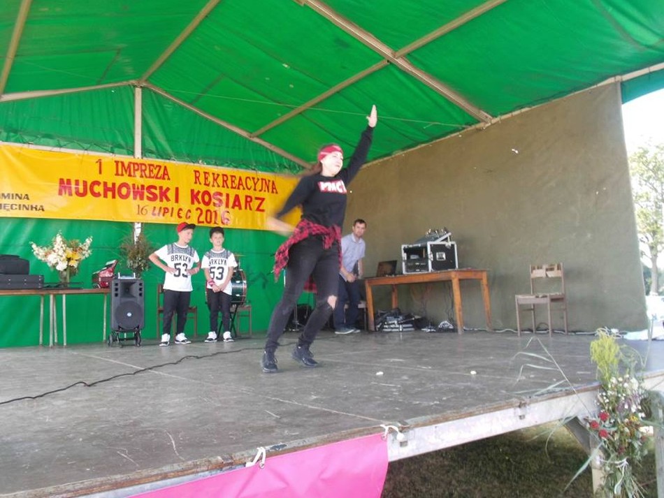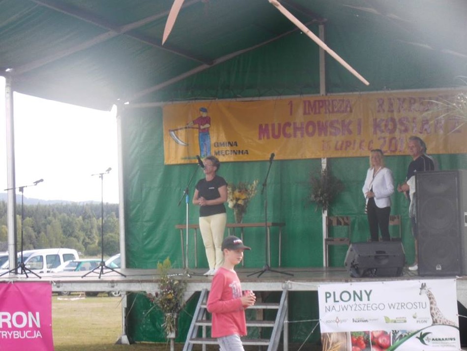 W dniu 16 lipca 2016 na boisku wiejskim w Muchowie odbyła się 1. Impreza Rekreacyjna ,,Muchowski Kosiarz” przygotowana w całości przez mieszkańców, która rozpoczęła się mszą świętą polową celebrowaną przez proboszcza parafii Pomocne, ks. Marka Lacha. Następnie otwarcia dokonała sołtys p. Janina Porębska. Do konkursu koszenia łąki udostępnionej przez p. Marię Chruściel przystąpiło 9 zawodników w tym dwie panie. Nad konkursem koszenia łąki czuwali sędziowie w składzie: p. Grzegorz Urbanowski – radny powiatu jaworskiego, p. Zbigniew Tusiński – prezes RSP pomocne, p. Zdzisław Sapieło – mieszkaniec Muchowa, wieloletni sołtys. Gdy kosiarze kosili trawę do gry terenowej przygotowała się młodzież z naszej wsi, którą nadzorował Jakub Mazur, a małe dzieci pod kierunkiem Magdaleny Stańczak rysowały, malowały i były malowane otrzymując drobne upominki. Po zakończeniu koszenia wszyscy zebrali się przy scenie i pod namiotem aby posłuchać występu strażaczek ,,Iskierki” z OSP Pomocne, zespołu ludowego ,,Chrośliczanie” z Chroślic i obejrzeć występ młodzieży z zespołu ,,K-Dance”, w składzie: Kamila i Aleksander Orda z Muchowa i Miłosz Nawara z Piotrowic.