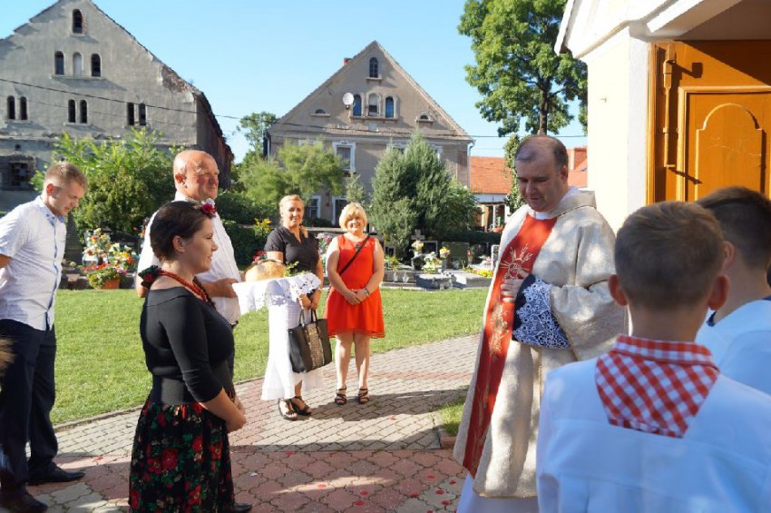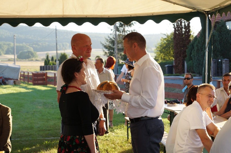 Uroczystości dożynkowe w Męcince rozpoczęły się mszą świętą w intencji rolników celebrowaną przez ks. dr Marka Kluwaka Proboszcza Parafii w Męcince. Barwny korowód na czele z delegacją wieńcową oraz zespołem folklorystycznym Ojry Bis poprowadził mieszkańców na boisko sportowe, gdzie odbyła się dalsza część wydarzenia. W uroczystości udział wziął wójt Mirosław Brzozowski, który podziękował rolnikom za trud pracy i złożył im życzenia. Podczas dożynek wiejskich wójt przekazał zgromadzonym mieszkańcom informację o przystąpieniu do realizacji budowy chodnika w Nowej Męcince, co spotkało się z dużą aprobata społeczności lokalnej.