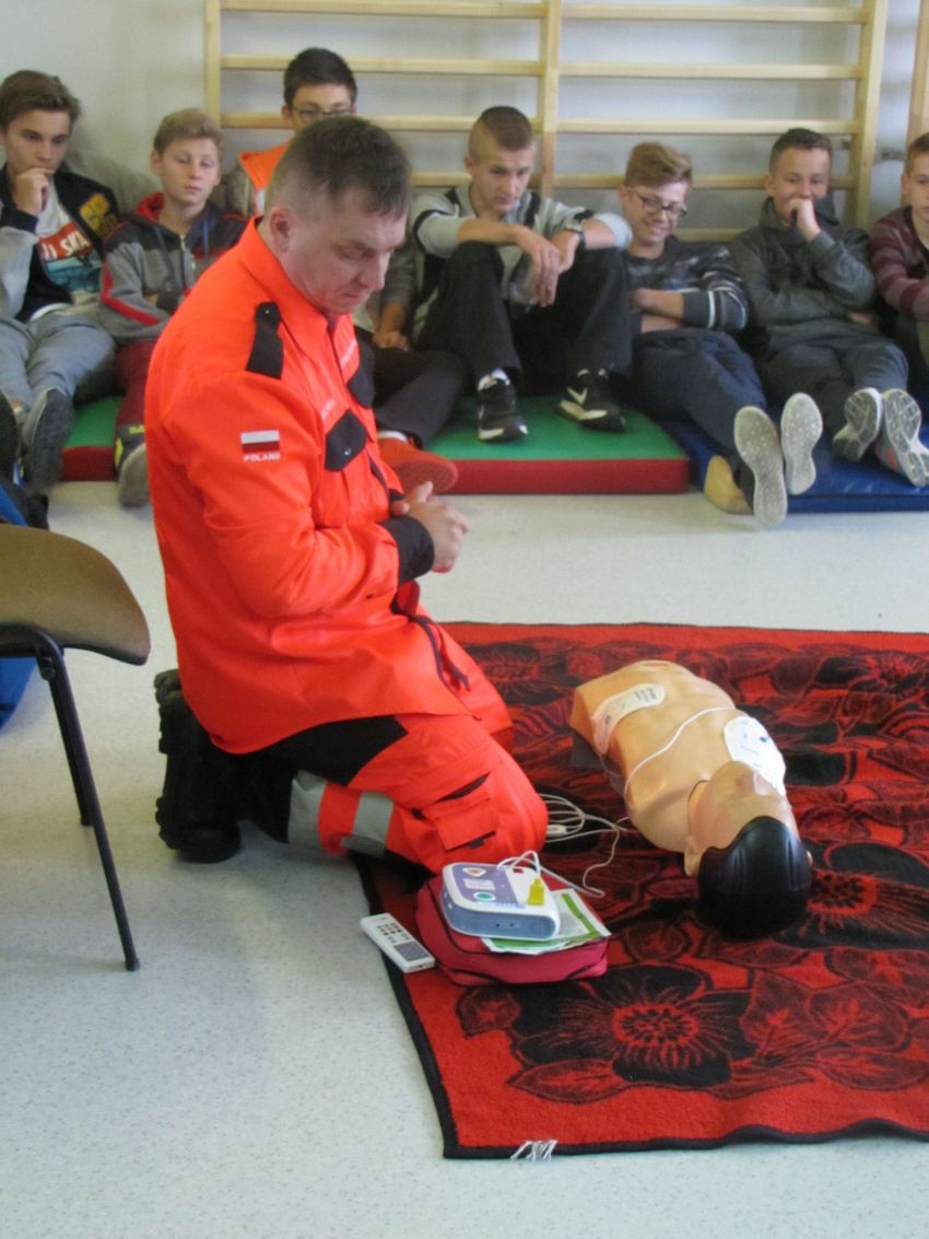 We wtorek 11 października odbyły się zajęcia z udzielania pierwszej pomocy przedmedycznej. Poprowadził je Pan Tomasz Wala – wykwalifikowany ratownik medyczny, pracownik Pogotowia Ratunkowego w Legnicy.