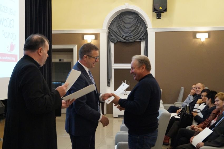 Wyjątkowe spotkanie odbyło się w niedziele w sali widowiskowej GOKE w Męcince. Wójt Mirosław Brzozowski wraz z proboszczem parafii pw. św. Andrzeja Apostoła w Męcince Markiem Kluwakiem podziękowali mieszkańcom gminy za okazane serce i pomoc przy organizacji Pielgrzymki na Kalwarię.