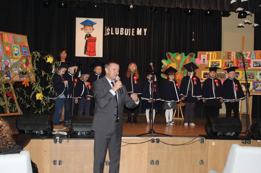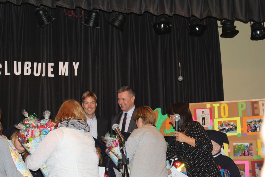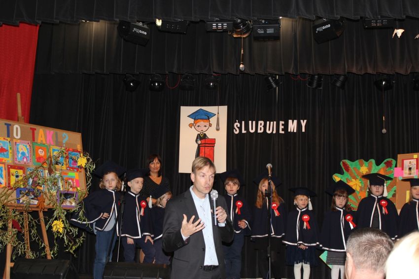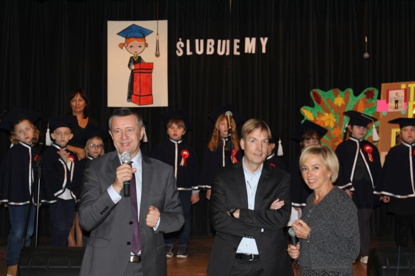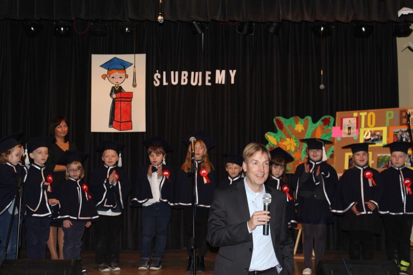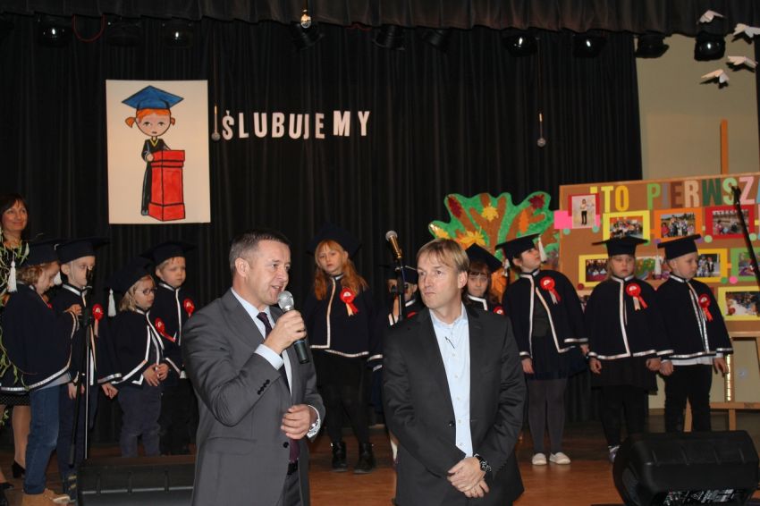 Dużą niespodzianką dla dzieci, nauczycieli i rodziców była wizyta włodarza gminy podczas pasowania pierwszoklasistów w Szkole Podstawowej w Męcince, bowiem wraz z wójtem naszych uczniów odwiedził dr Andreas Schenkel dyrektor fabryki Mercedesa, która w najbliższych latach powstanie w naszej okolicy.