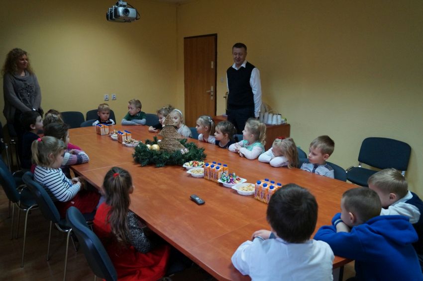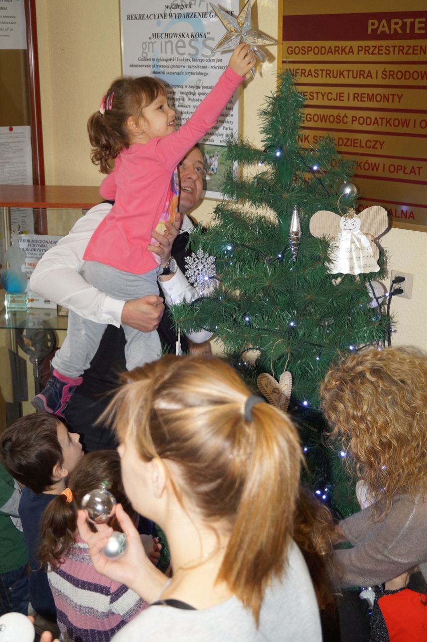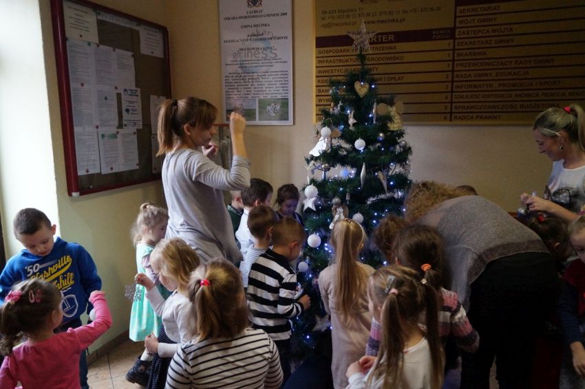 Na zaproszenie wójta przedszkolaki z Męcinki oraz Piotrowic ubierały choinkę w Urzędzie Gminy w Męcince. Dzieci przybyły z prezentami świątecznymi oraz ozdobami, którymi przyozdobiły urząd oraz świąteczne drzewko.