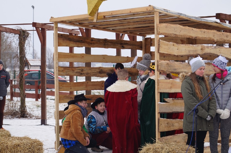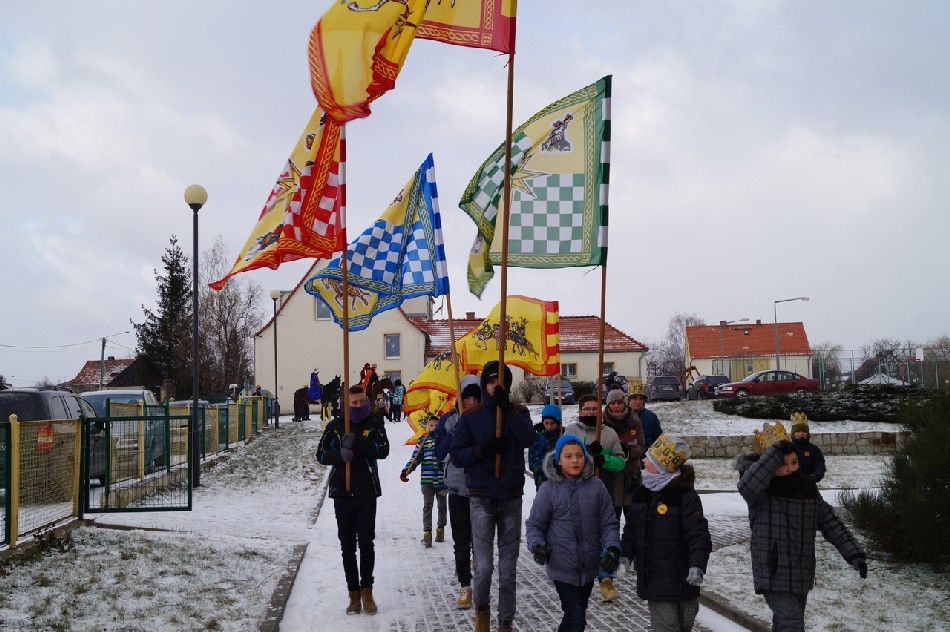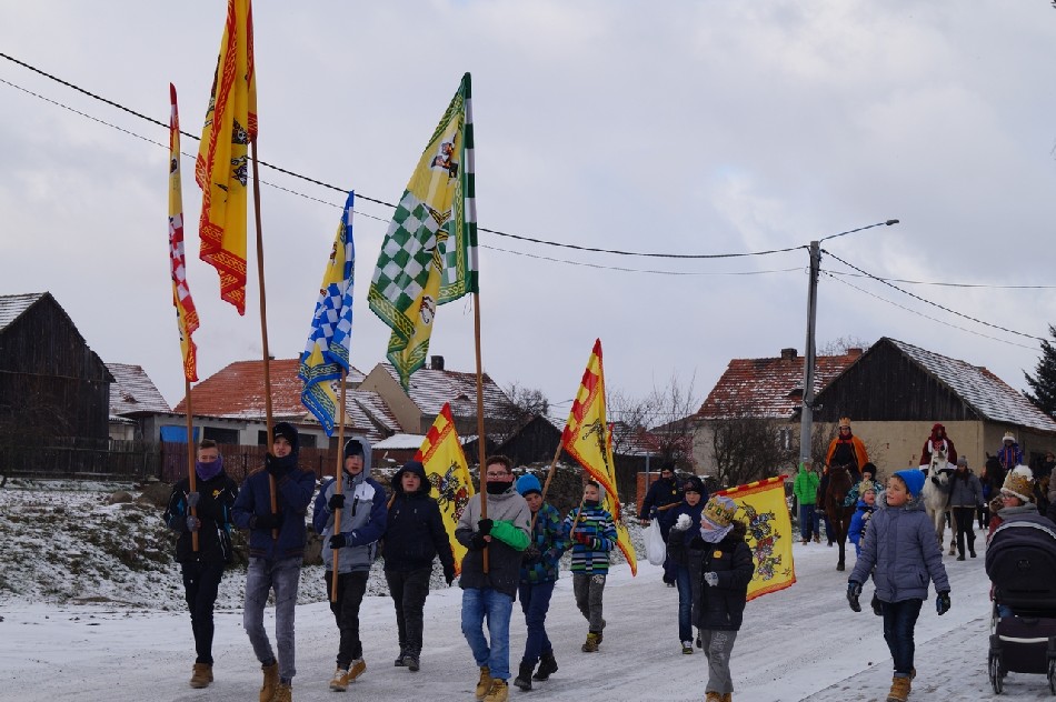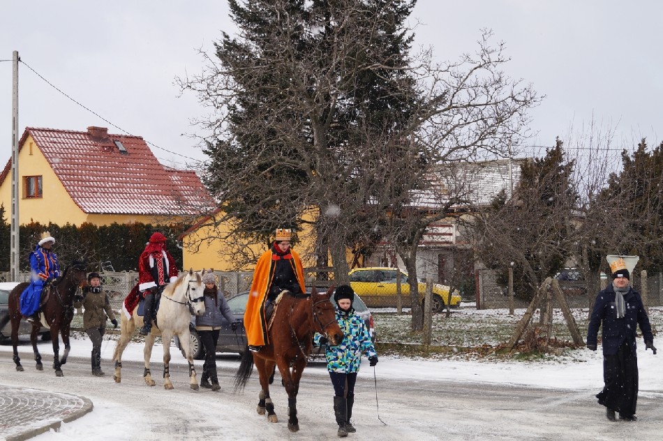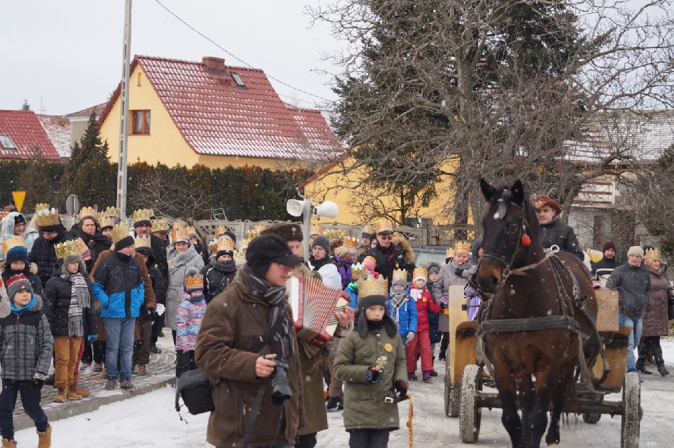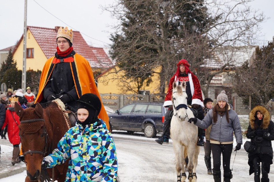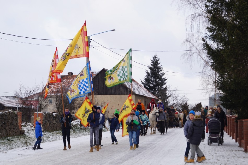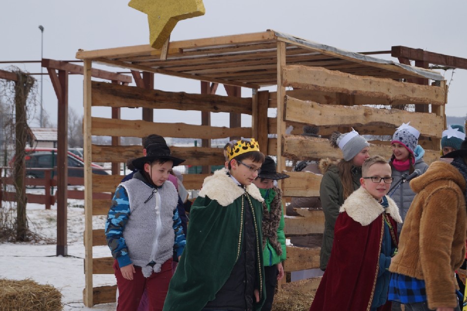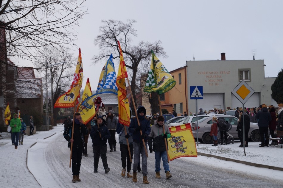 Już po raz trzeci Orszak Trzech Króli odbył się w parafii św. Andrzeja Apostoła w Męcince, który rozpoczął się uroczystą Mszą Św. o godz. 12:00. W tym roku w związku z 750 rocznicą bulli kanonizacyjnej w orszaku towarzyszyła także królowa- św. Jadwiga. Po zakończeniu Mszy św. Mędrcy ze Wschodu wraz z królową św. Jadwigą oraz mieszkańcami gminy i sąsiednich miejscowości podążali w orszaku do amfiteatru na wspólne kolędowanie. Podczas orszaku zaprezentowane zostały trzy scenki z życia św. Jadwigi, które przygotowali dorośli mieszkańcy gminy. Symbolem Orszaku Trzech Króli stały się papierowe korony, które rozdawane były uczestnikom Orszaku wraz z okolicznościowymi naklejkami i śpiewnikami kolęd. Wyjątkową chwilą podczas wspólnego kolędowania były jasełka w wykonaniu dzieci z Zespołu Szkół w Męcince.
