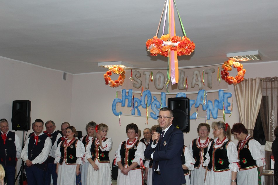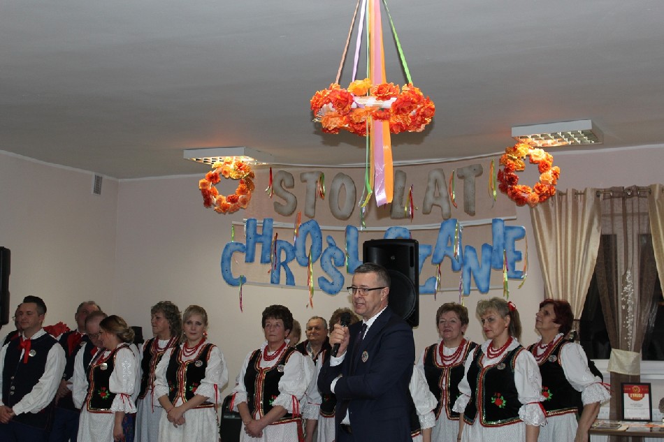 „Funkcjonowanie w zespole muzycznym - ludowym to nie tylko miłe koncerty, brawa, zdobyte trofea…. Funkcjonowanie w zespole ludowym to wyjęte chwile z życia domowego, to poświęcony czas dla mieszkańców, przyjaciół i sąsiadów…. Funkcjonowanie w zespole ludowym to łzy radości, ale i chwile trudne, to umiejętność współpracy z innymi ludźmi, to sztuka kompromisów… To czasem sposób na spędzenie wolnego czasu, a czasem ucieczka przed samotnością…. Funkcjonowanie w zespole to nawiązywanie przyjaźni, być może miłości ….. to również pożegnanie z tymi co już odeszli. Funkcjonowanie w takim zespole to po prostu …. kawał historii życia. I dziś jubileusz tej historii obchodzicie Kochani Chrosliczanie. To jubileusz istnienia zespołu, ale przede wszystkim jubileusz ważnego etapu życia każdego z Was. Życzę Wam Kochani Chrośliczanie dalszych lat owocnej twórczości. Przyjmijcie proszę także życzenia wszelkiej pomyślności w życiu osobistym. Życzenia te i podziękowania kieruję również do Waszych rodzin” – powiedział podczas uroczystości wójt M. Brzozowski.