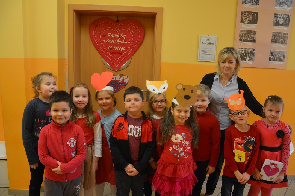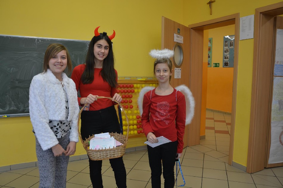 Co roku Samorząd Uczniowski naszej szkoły stara się umilić wszystkim ten jakże piękny dzień. Tak było też i w tym roku! Zgodnie z naszym szkolnym zwyczajem działała „Poczta Walentynowa”, a jej kurierzy Amor i Serce czuwali aby każdy liścik trafił do właściwego adresata. Ponadto każdy, kto przyszedł tego dnia ubrany na czerwono, mógł uniknąć odpytywania