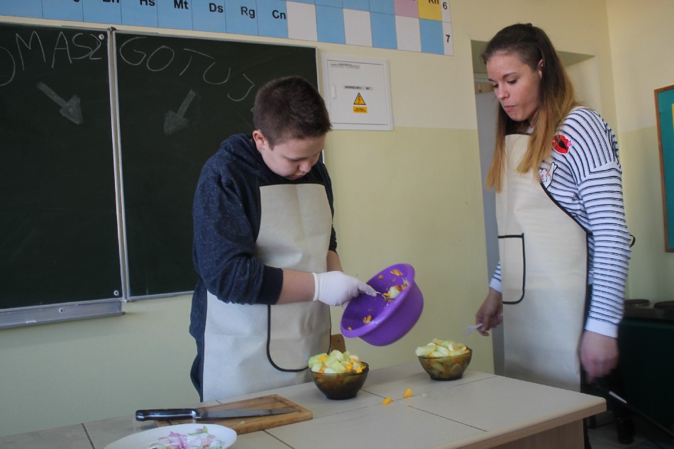Podczasferiinasigimnazjaliścipodjęlisięfinalizacjiswoichdziałańwramachprojektuedukacyjnego „ Healthysnacksforteenagers” (Zdroweprzekąskidlanastolatków).Jegogłównymcelemjestpromowaniezdrowegostyluodżywianiasięwśródrówieśników,aletakżedoskonalenieumiejętnościposługiwaniasięjęzykiemangielskimorazposzerzaniekompetencjiinformatycznych.Finalnymwytworempracyuczniówbędziefilminstruktażowywjęzykuangielskimprzedstawiającysposóbprzygotowaniadwóchszybkich,smacznych,aprzedewszystkimzdrowychdańodpowiednichdlanastolatków.