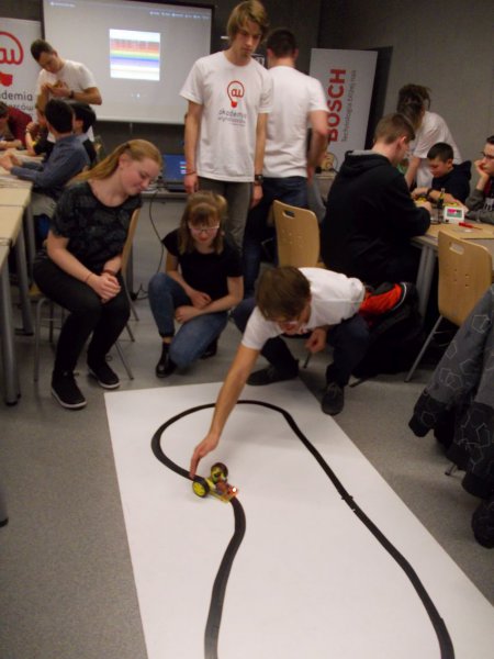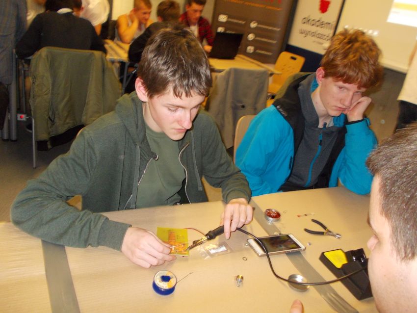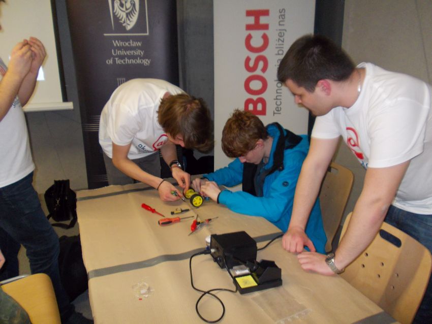 …pod takim tytułem poprowadzone zostały warsztaty, w których uczestniczyli uczniowie z Zespołu Szkół w Męcince na Politechnice Wrocławskiej w ramach realizacji kolejnej edycji Ogólnopolskiego Projektu Edukacyjnego „Akademia Wynalazców im. R. Boscha” Tym razem uczniowie pod opieką Beaty Melnarowicz gościli w „STREFIE KULTURY STUDENCKIEJ”, a zajęcia prowadzili studenci z Koła Naukowego KoNaR.