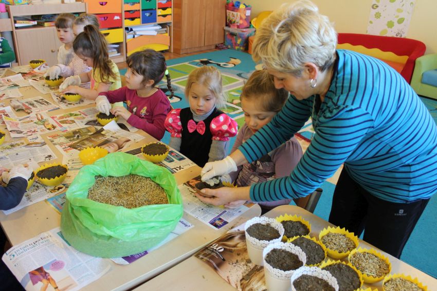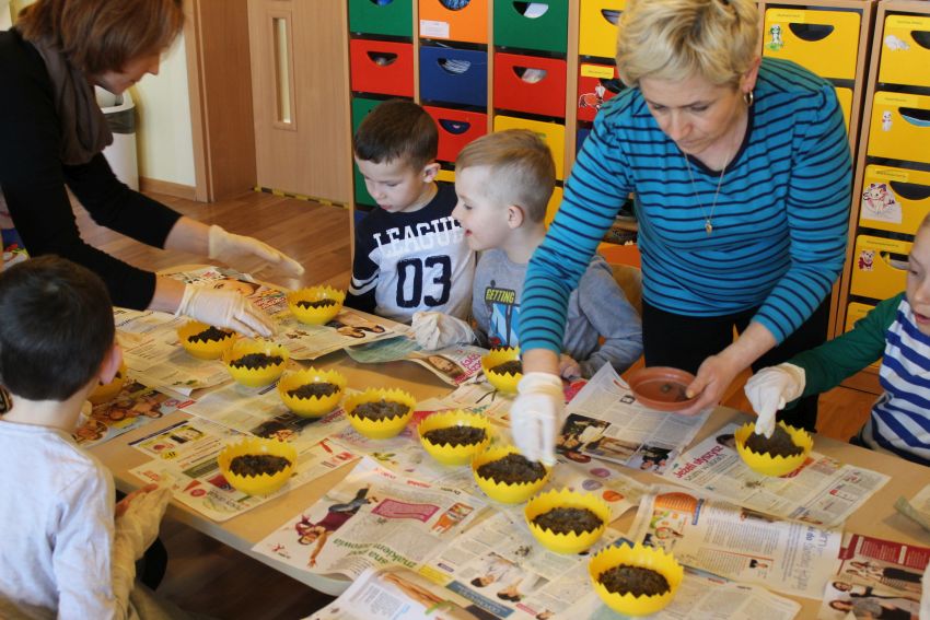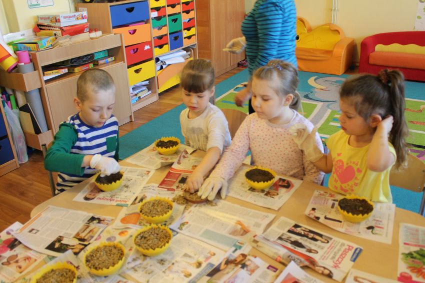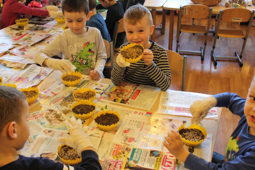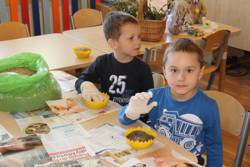 Aby cieszyć się zielonymi źdźbłami owsa na wielkanocnym stole, nasiona musimy wysiać około dwa tygodnie przed Świętami Wielkanocnymi. Po 8–10 dniach owies powinien wzejść. W ostatni piątek marca Krasnoludki z Planety Przyjaźni rozpoczęły przygotowania do Świąt Wielkanocnych.