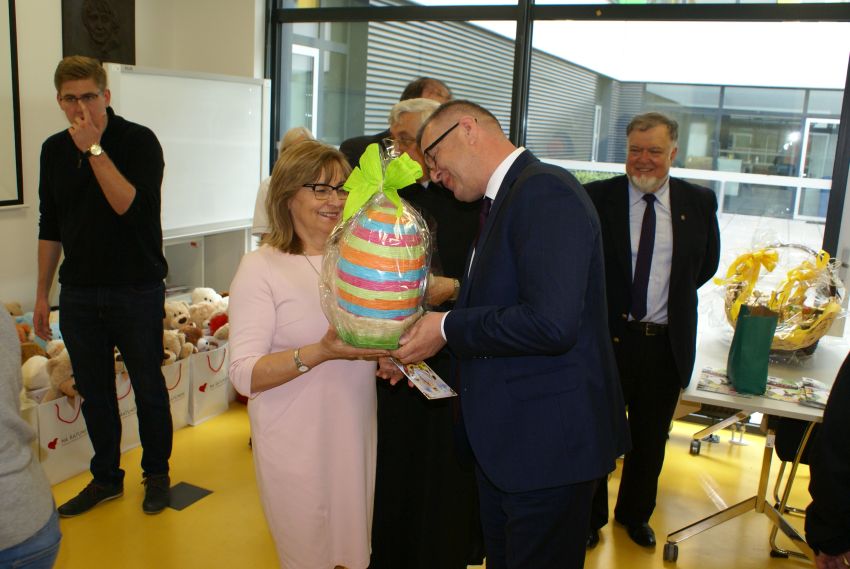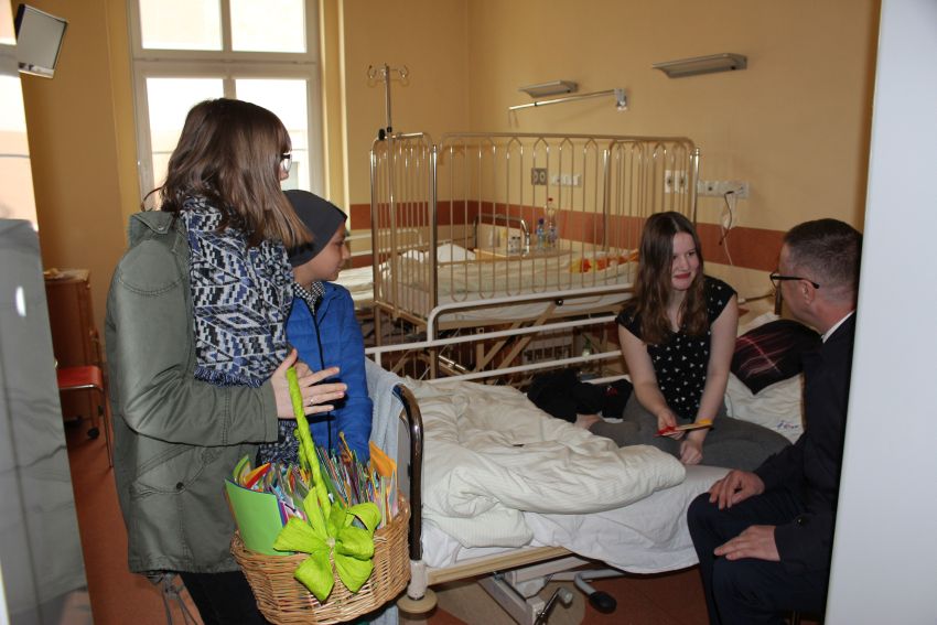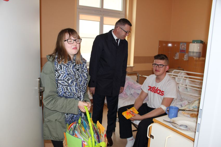 Dzieci ze szkół i przedszkoli z Gminy Męcinka już kolejny rok własnoręcznie wykonały kartki świąteczne, które powędrowały do podopiecznych z Kliniki Transplantacji Szpiku, Onkologii i Hematologii Dziecięcej we Wrocławiu, oddziałów pediatrycznych szpitali w Jaworze i Legnicy oraz oddziału chirurgii dziecięcej szpitala w Legnicy. W imieniu uczniów i przedszkolaków życzenia dla dzieci przekazali wójt Mirosław Brzozowski, ks. dr Marek Kluwak oraz uczniowie Klaudia Malina i Krystian Kerger. Dzieci w szpitalach od naszej delegacji otrzymały również słodycze.