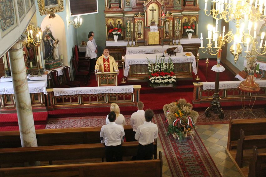 Zgodnie ze staropolską tradycją mieszkańcy Męcinki podziękowali za tegoroczne polony. Dożynki wiejskie odbyły się 19 sierpnia br. a rozpoczęły się Mszą Świętą w intencji mieszkańców w kościele parafialnym w Męcince. Poświęcenia wieńca dożynkowego oraz chleba z tegorocznych zbiorów dokonał Proboszcz Parafii w Męcince ks. dr Marek Kluwak. Barwny korowód na czele z delegacją wieńcową oraz zespołem folklorystycznym Ojry Bis poprowadził mieszkańców na boisko sportowe, gdzie odbyła się dalsza część wydarzenia.