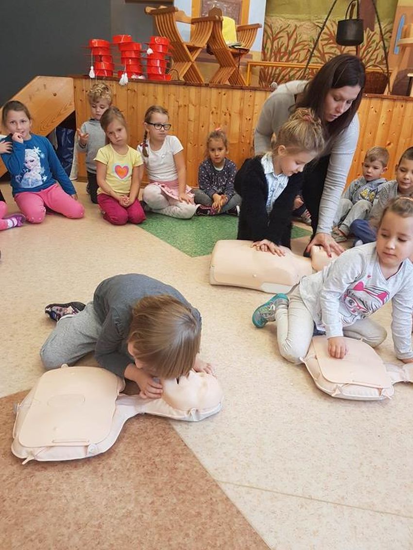 16.10.2017r. w godzinach 12: 00-12:30 nasze przedszkolaki włączyły się w ogólnopolską akcję WOŚP bicia rekordu w prowadzeniu jednoczesnej resuscytacji krążeniowo-oddechowej. 50 dzieci przez 30 minut prowadziło akcję reanimacyjną na specjalnie do tego przeznaczonych fantomach.