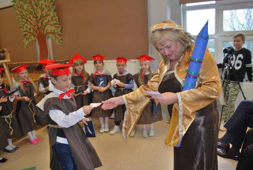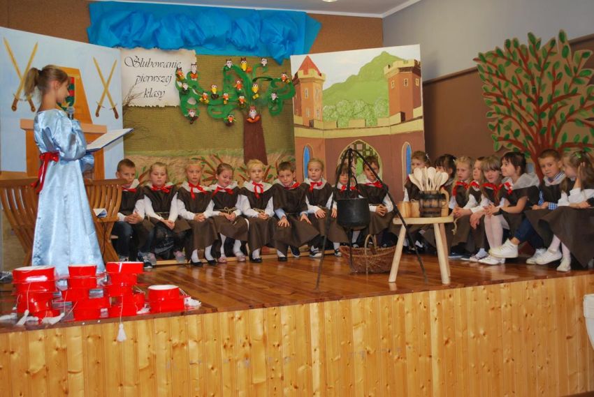 27 października 2017 r., od samego rana panowała świąteczna atmosfera w naszej szkole. Uczniowie klasy pierwszej ubrani w świąteczny strój galowy, dekoracje w sali lekcyjnej i na auli, przygotowany sprzęt nagłaśniający i nagrywający - to wszystko po to, aby ślubowanie pierwszaków wypadło jak najbardziej uroczyście.