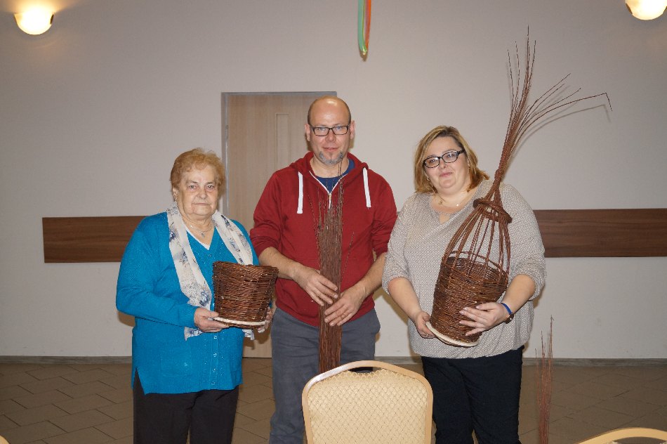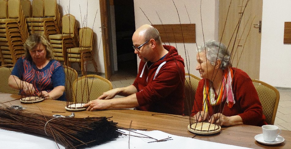 W minioną niedzielę 5 listopada br. w świetlicy wiejskiej w Chroślicach odbyły się warsztaty wikliniarskie zorganizowane przez Wójta Gminy Męcinka w ramach akcji „Październik – listopad miesiącami seniorów w Gminie Męcinka.” Warsztaty wyplatania koszyków prowadził mistrz w zawodzie koszykarz – plecionkarz Rafał Górczyński. Podczas spotkania artysta opowiedział o swojej twórczości, pokazał uczestnikom spotkania kilka wykonanych przez siebie prac oraz zaprezentował podstawową technikę wyplatania koszy. Uczestnicy warsztatów pod okiem mistrza mieli możliwość spróbować samodzielnego wyplatania koszyków, z czego bardzo chętnie skorzystali. Wykonane prace naszych seniorów były bardzo piękne.