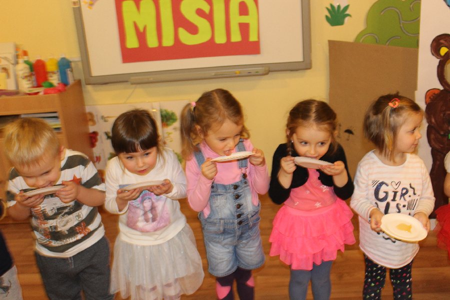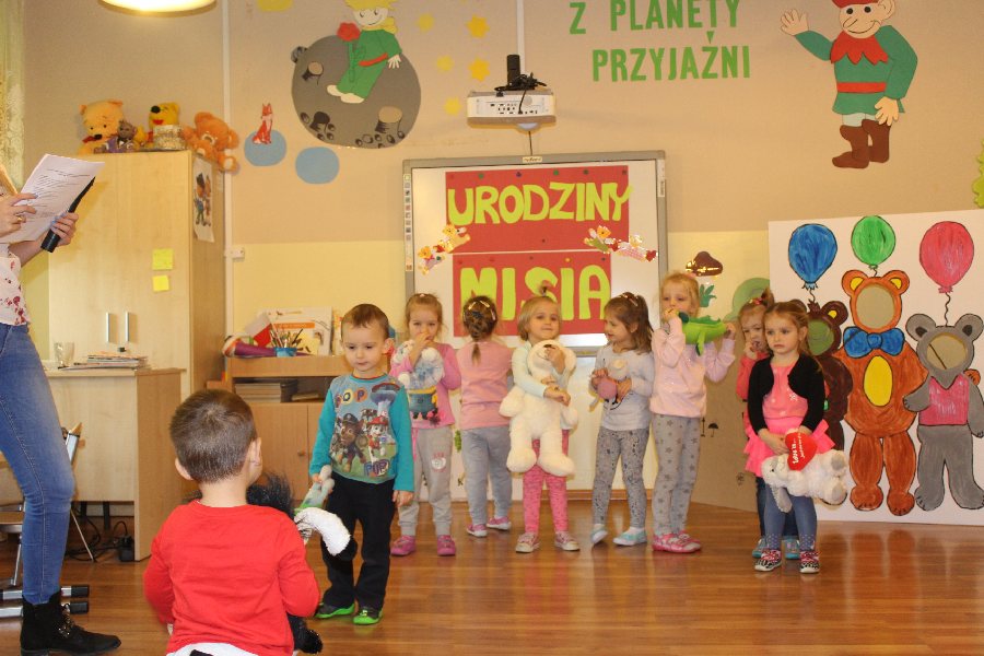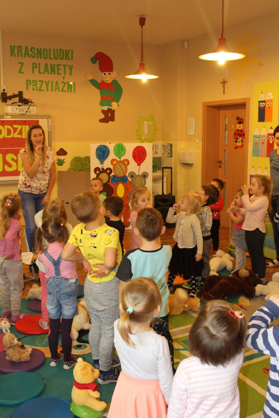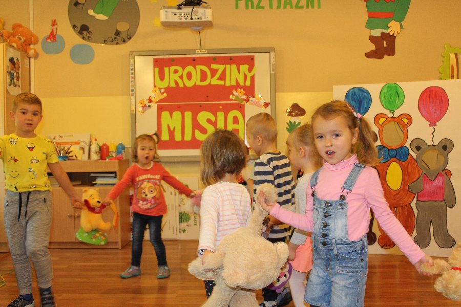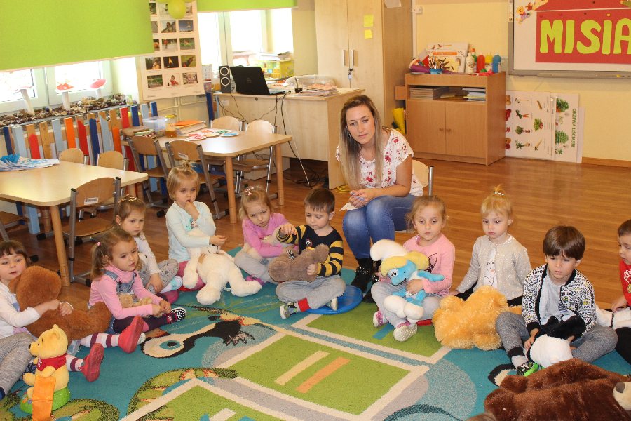 25 listopada swoje święto obchodzi najmilsza zabawka, najlepszy przyjaciel dzieci i niezastąpiona przytulanka przy zasypianiu – Pluszowy Miś. Mimo coraz nowocześniejszych i coraz bardziej atrakcyjnych zabawek, moda na misie nie przemija, bo “czy to jutro, czy to dziś, wszystkim jest potrzebny Miś!”. Grupa Krasnale z Planety Przyjaźni i Krasnale z Planety Radości wspólnie świętowały Światowy Dzień Pluszowego Misia. Tego dnia każdemu maluchowi towarzyszył jego pluszak. Dzieci poznały historię małego niedźwiadka, który do dzisiaj nosi angielską nazwę Teddy. Podczas zajęć dzieci śpiewały, tańczyły, mówiły rymowankę razem ze swoimi misiami. Odbyły się też konkurencję: wyjadanie miodku, zbieranie wykałaczek rękawicą kuchenną, przejście misiów leśną ścieżką, zabawa plastyczna- rysuję misia. Zajęcia przygotowała i prowadziła Pani Anna Łękawa.