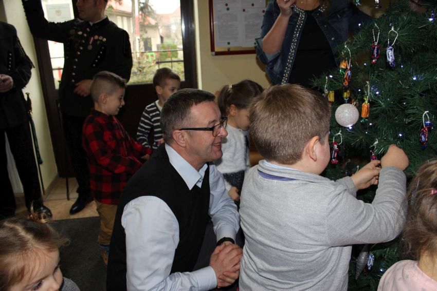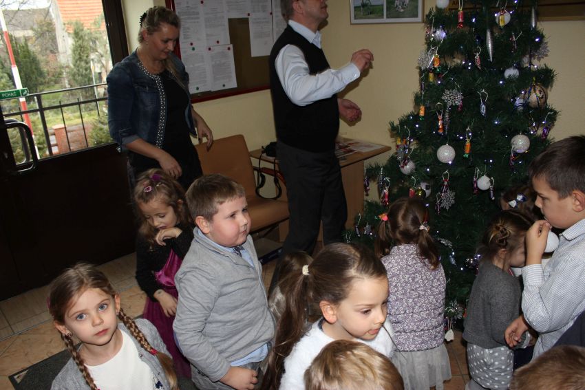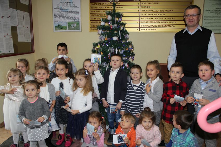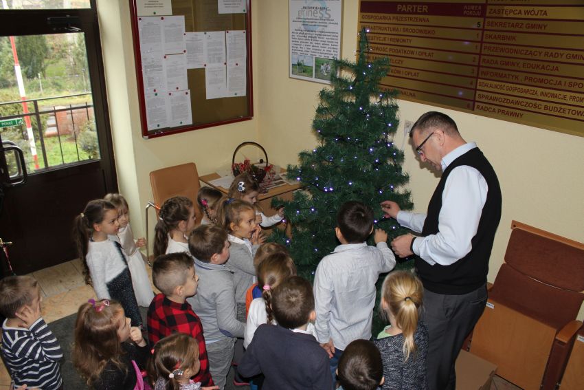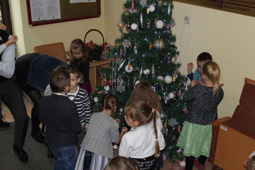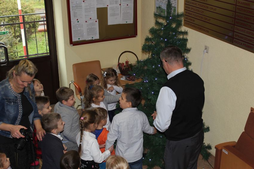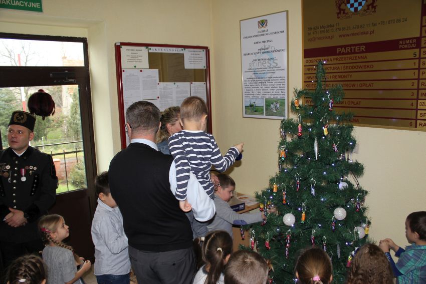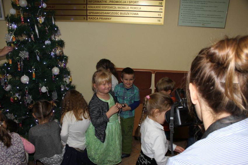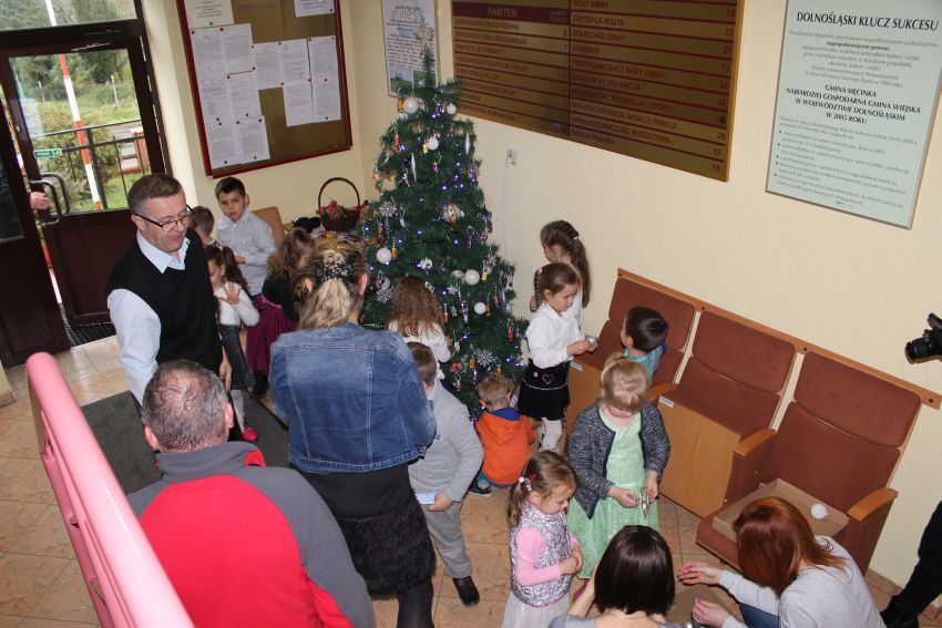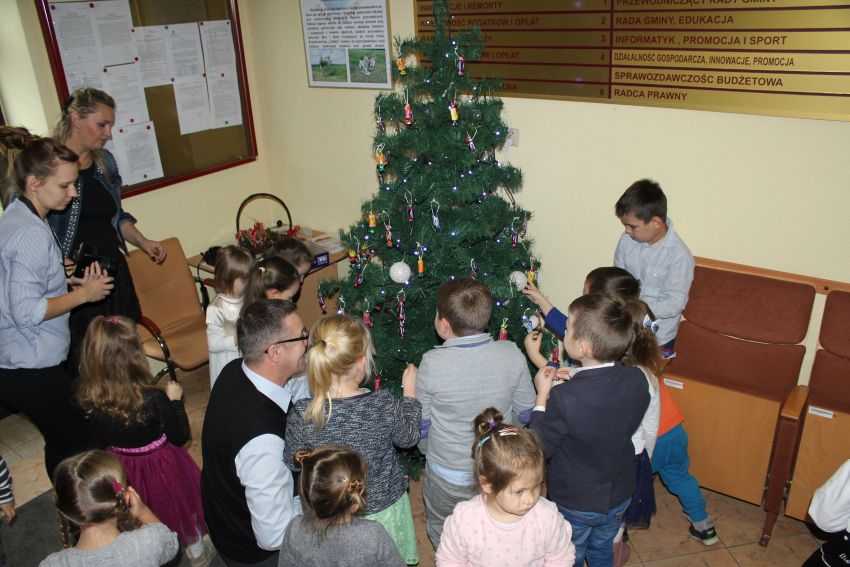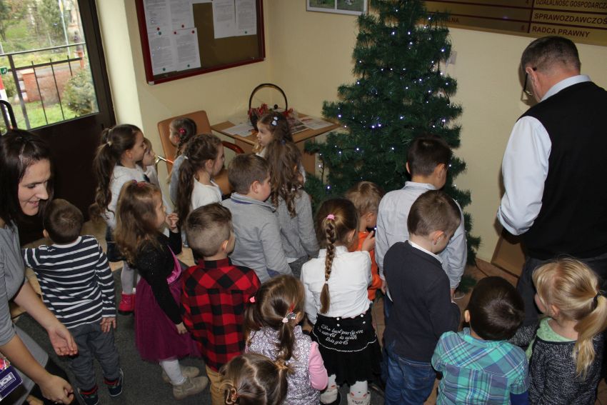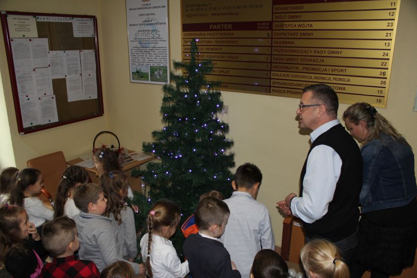 Na zaproszenie wójta przedszkolaki z Męcinki oraz Piotrowic ubierały choinkę w Urzędzie Gminy Męcinka.