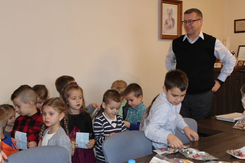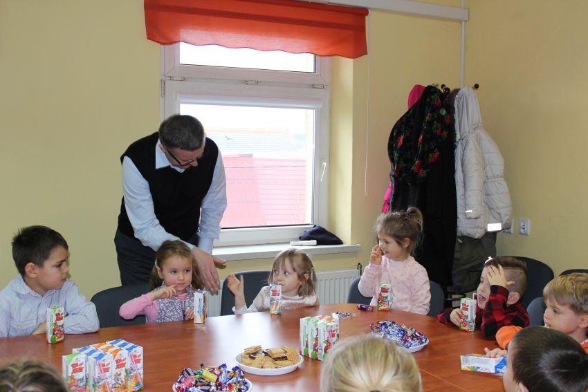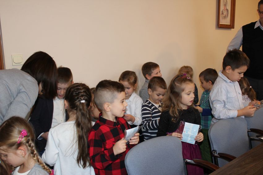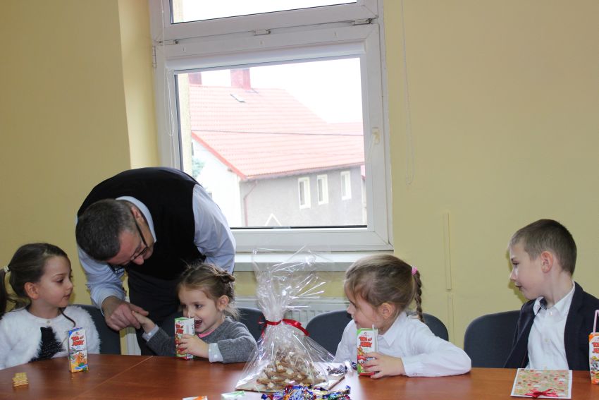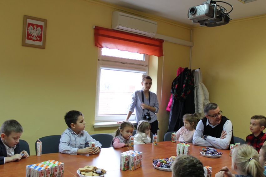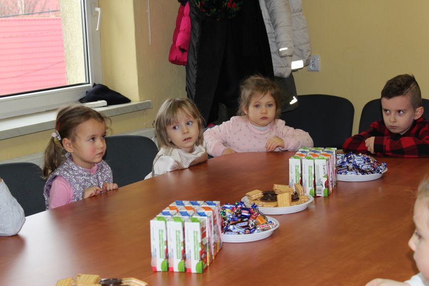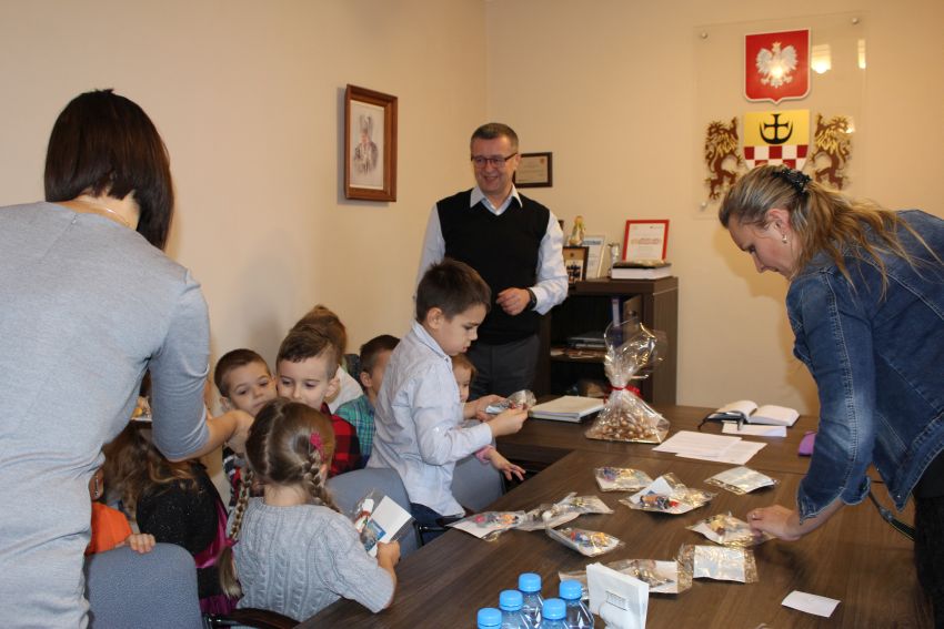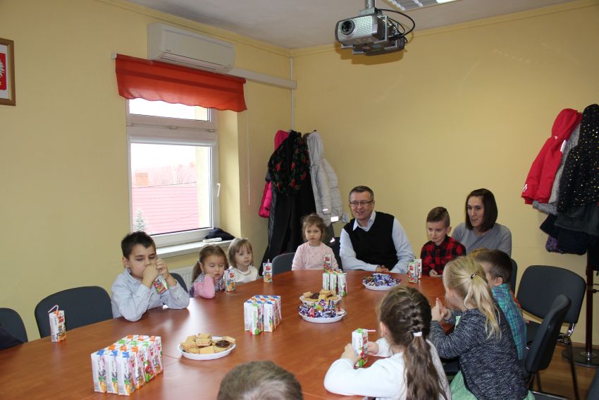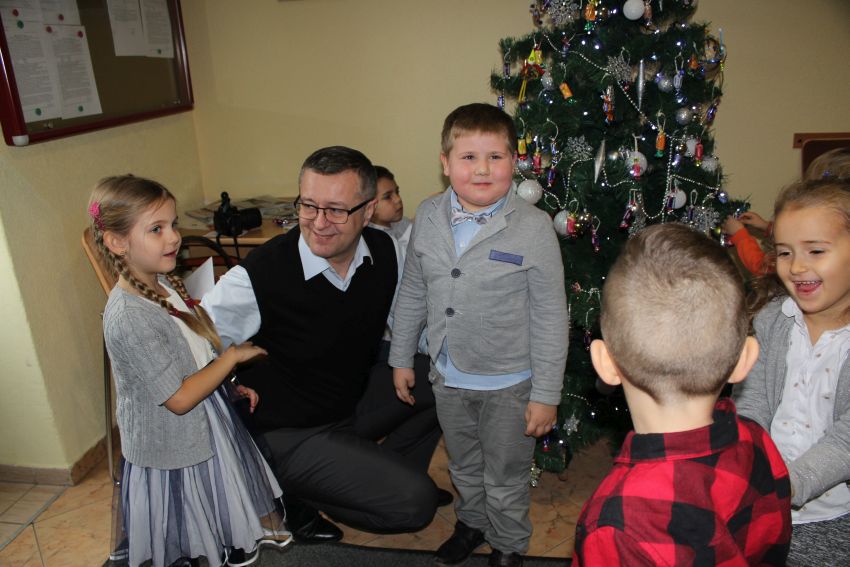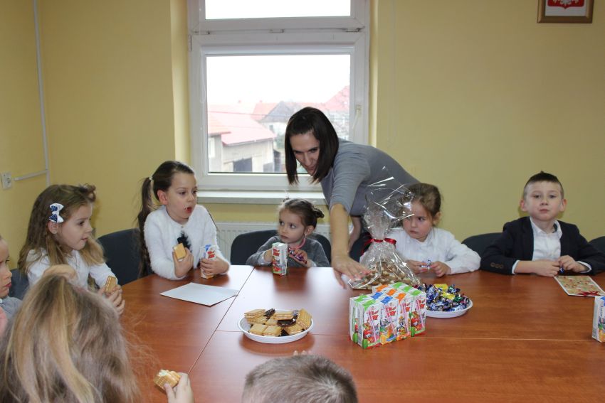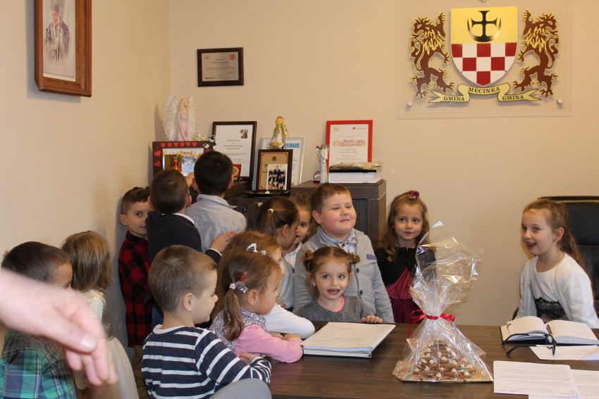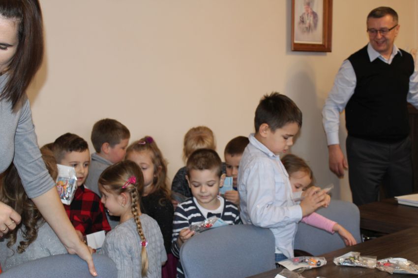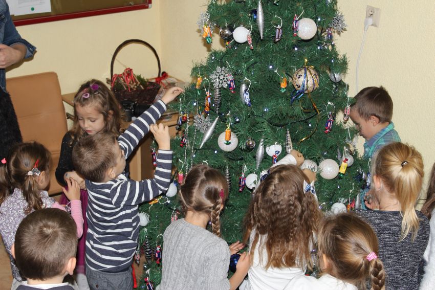 Na zaproszenie wójta przedszkolaki z Męcinki oraz Piotrowic ubierały choinkę w Urzędzie Gminy Męcinka.
