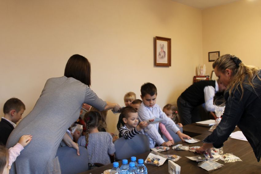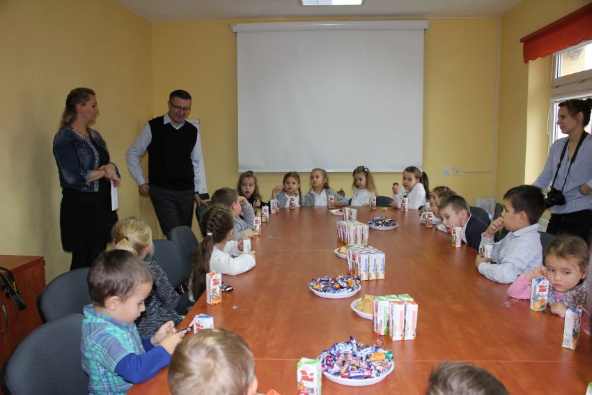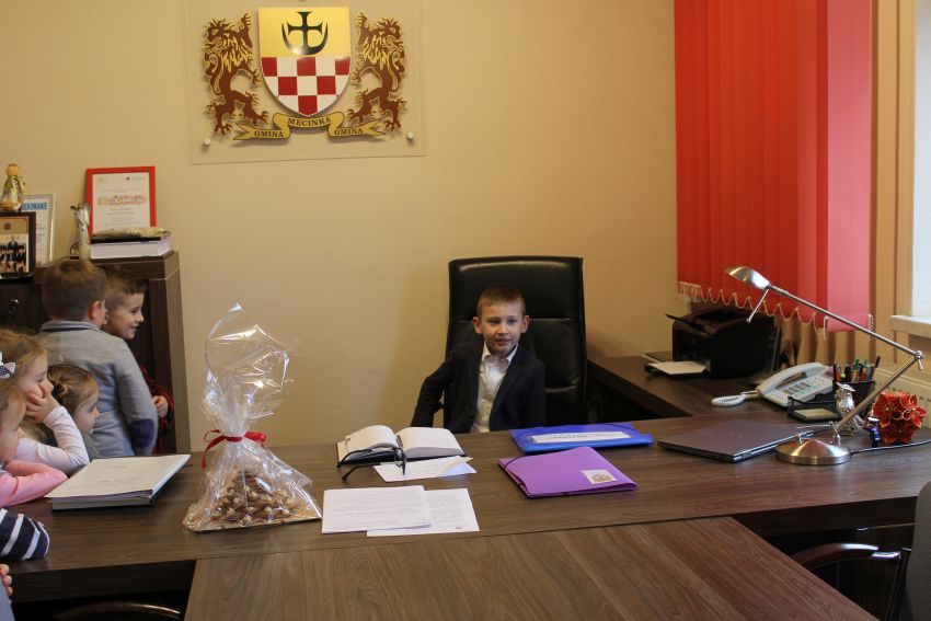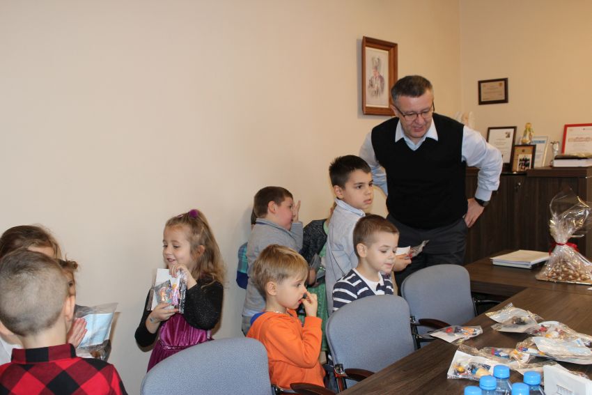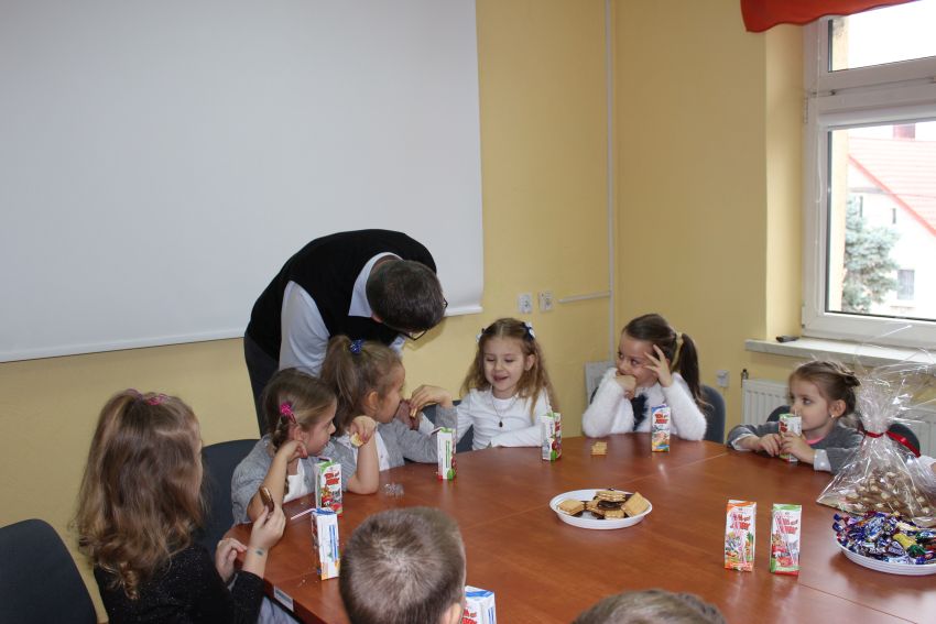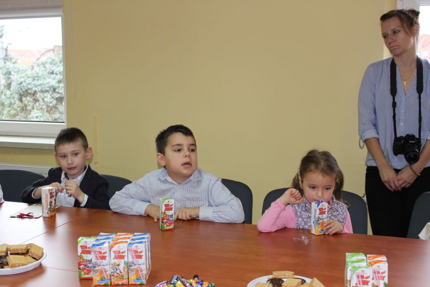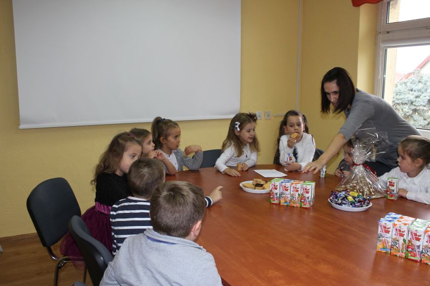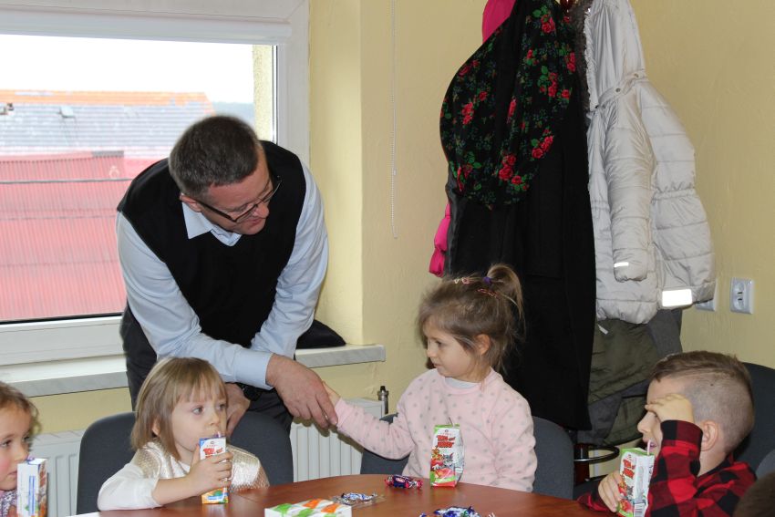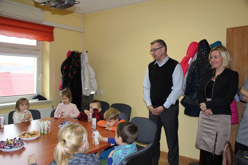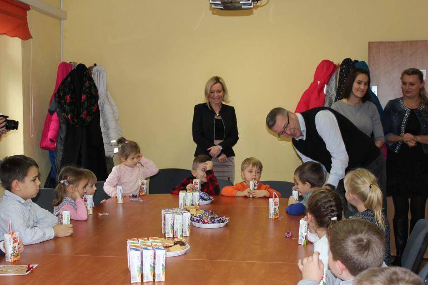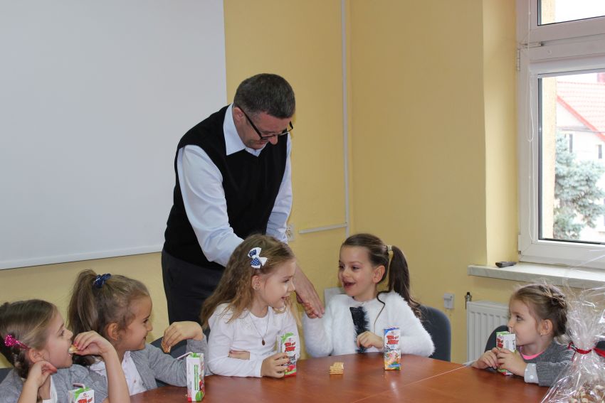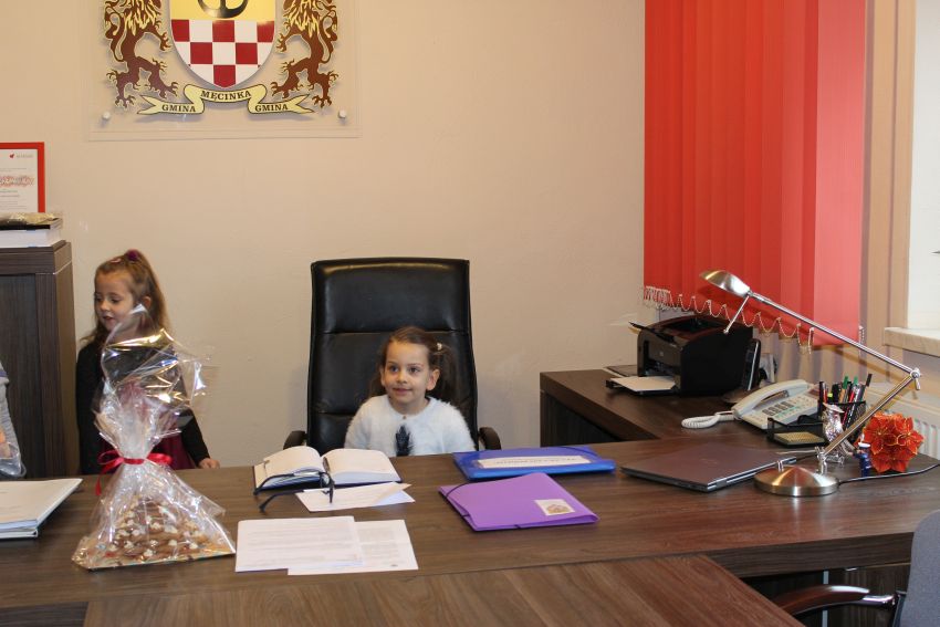 Na zaproszenie wójta przedszkolaki z Męcinki oraz Piotrowic ubierały choinkę w Urzędzie Gminy Męcinka.