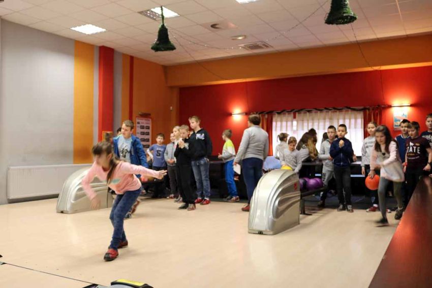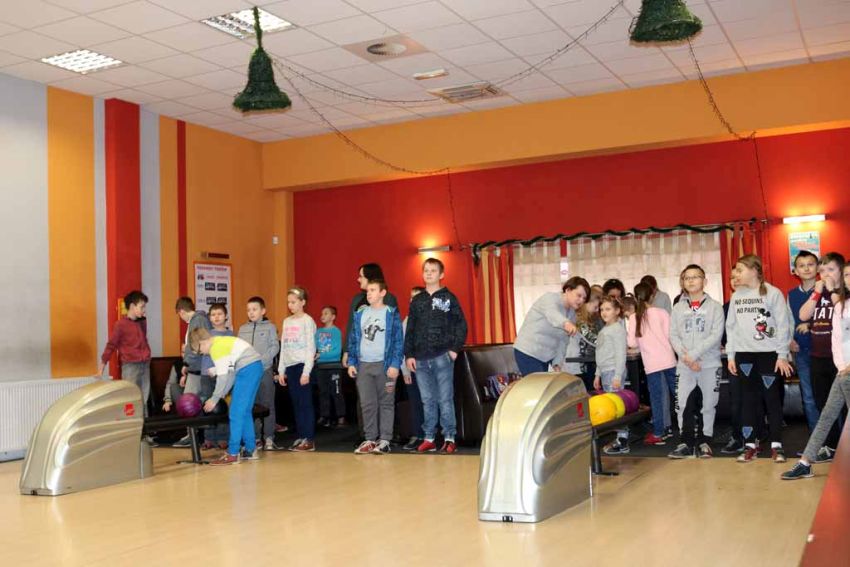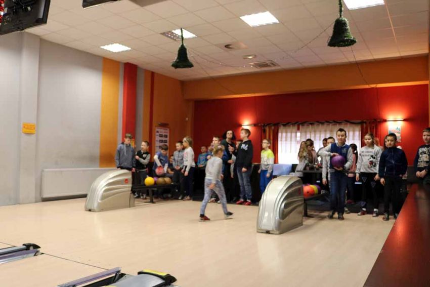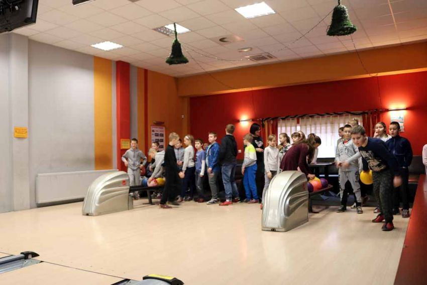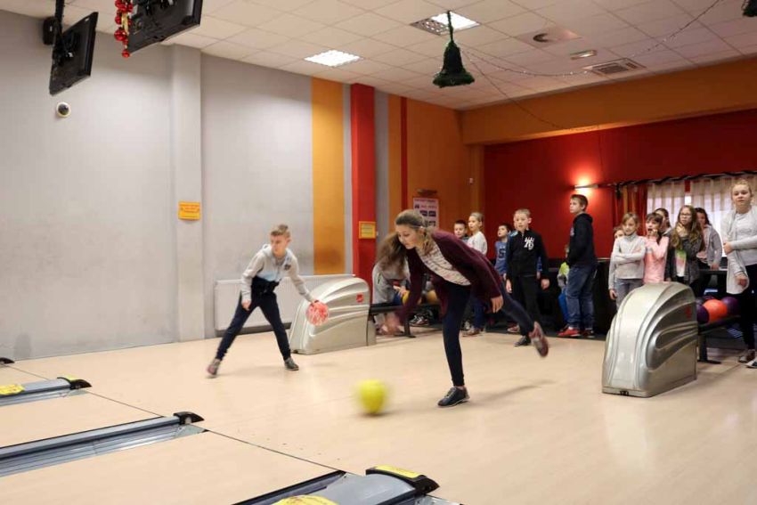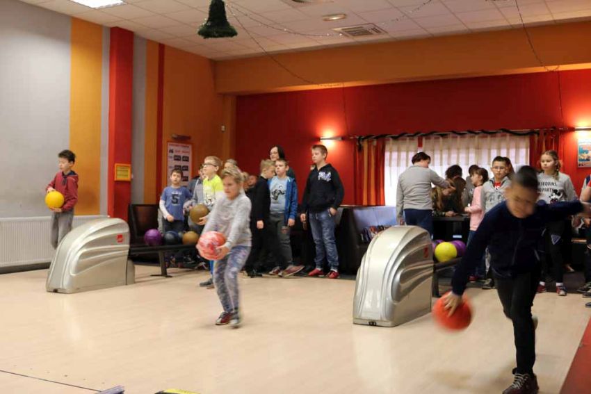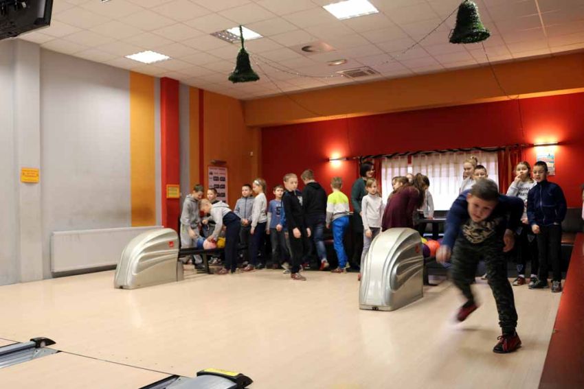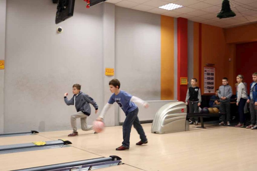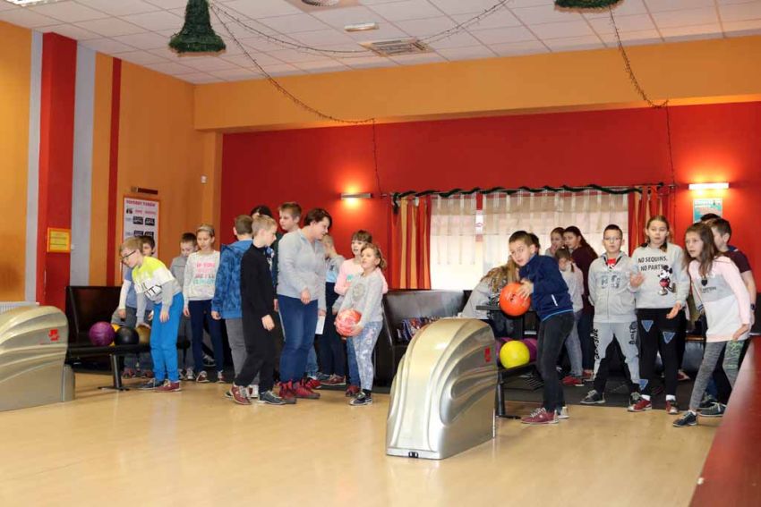 Wiadomo nie od dziś, że nasi uczniowie są bardzo aktywni sportowo i chętnie wykazują się w nowych dyscyplinach, dlatego trzeci dzień półkolonii zimowych nie mógł się odbyć bez wyjazdu na kręgielnię.