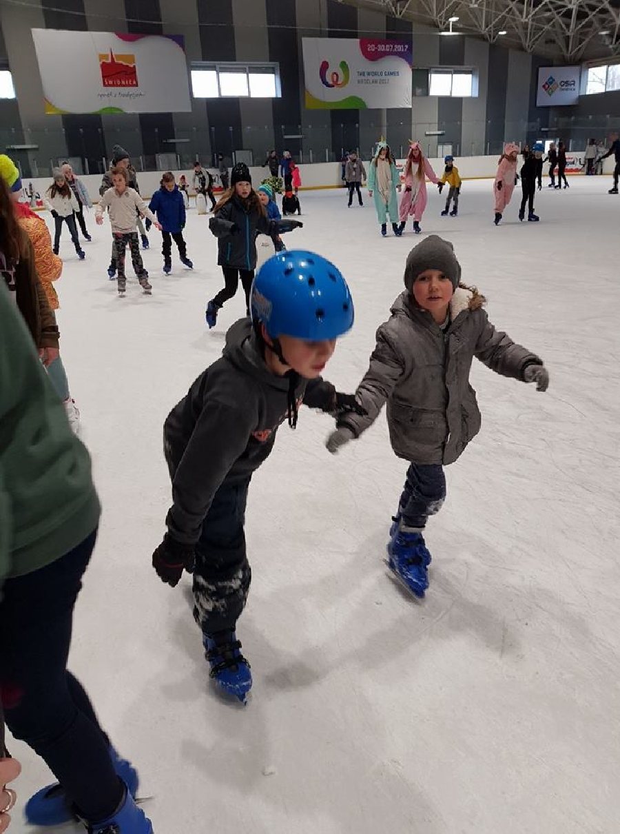Uczniowie ze szkoły w Piotrowicach z kolei w ostatni dzień półkolonii zimowych wybrali się na lodowisko do Świdnicy. Wszyscy świetnie bawili się na lodowej tafli, wyczyniając różne akrobacje zespołowo i indywidualnie. Na zakończenie wycieczki dzieci udały się do restauracji na rozgrzewający posiłek. Uczniowie wrócili do domu w świetnych humorach.