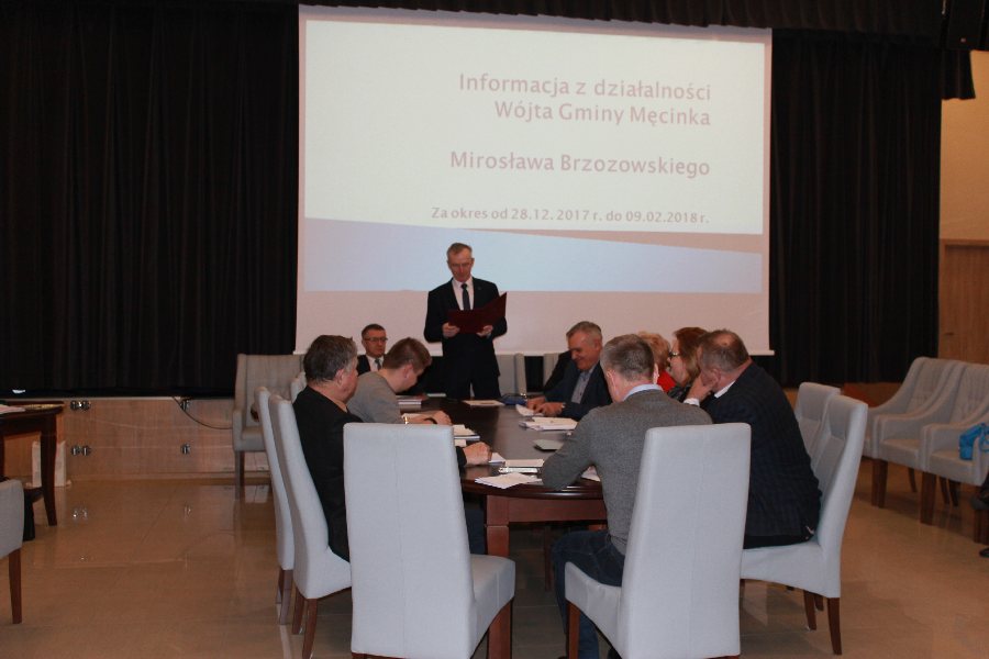 W dniu 9 lutego 2018 r. odbyła się XXXV sesja Rady Gminy Męcinka. Podczas sesji wójt Mirosław Brzozowski przedstawił informację z działalności za okres od 28.12. do 09.02.2018 r.