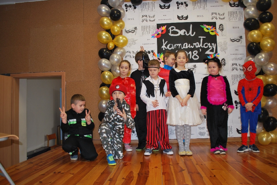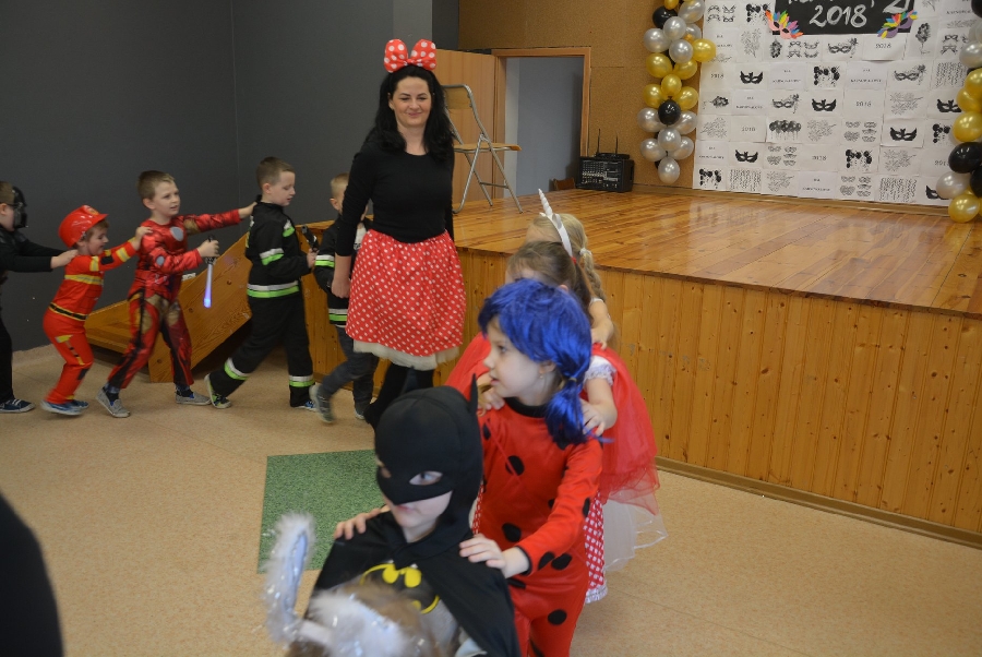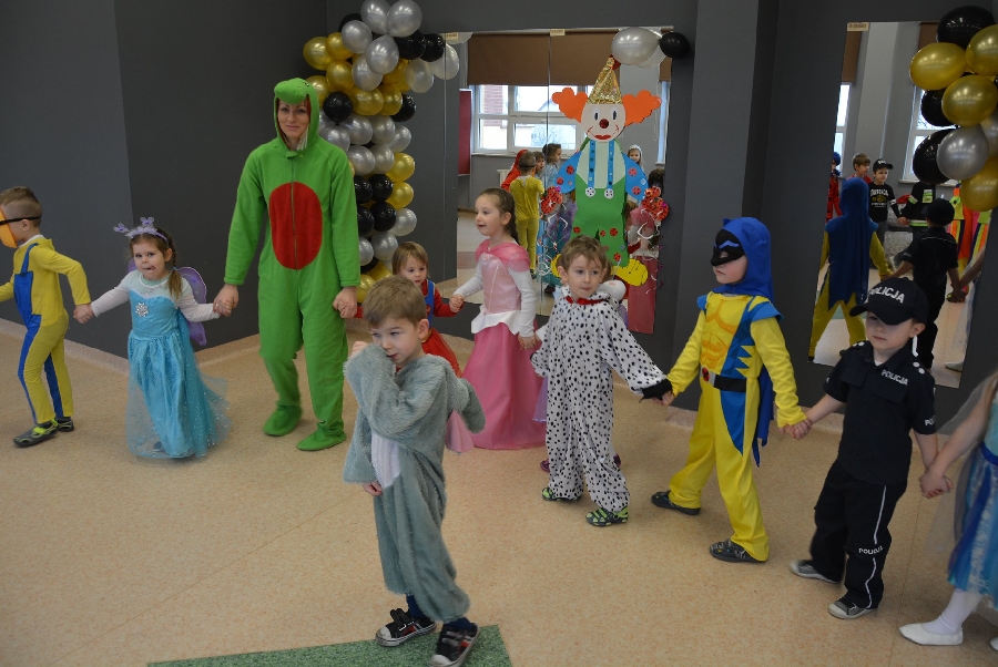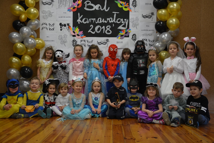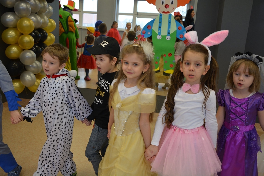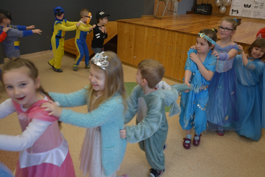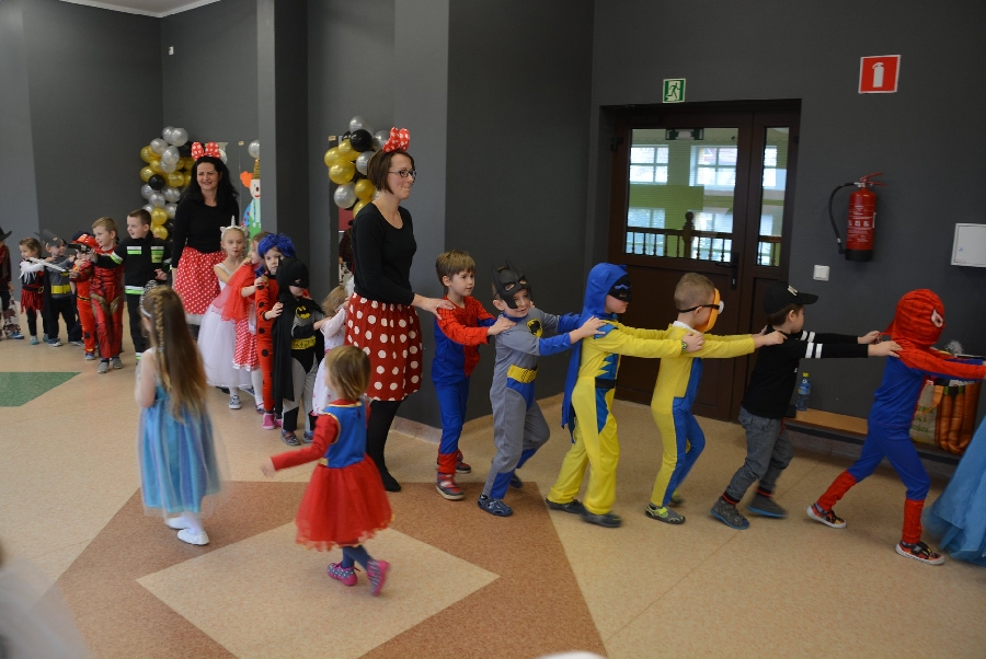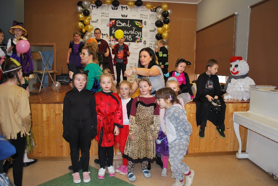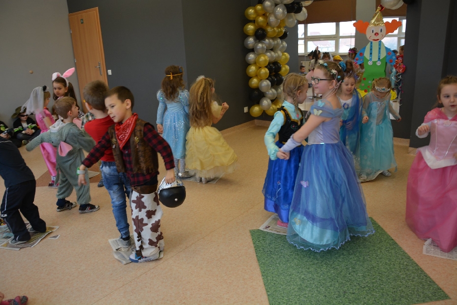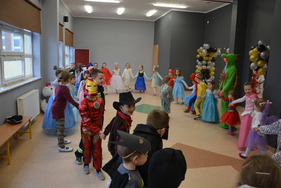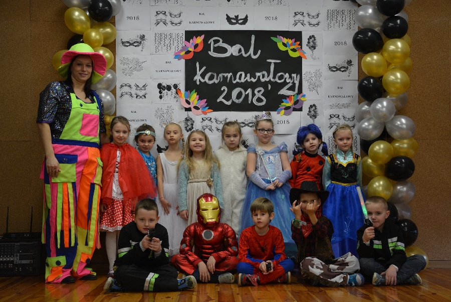Wystrój auli przygotowany przez Panie z przedszkola, wprowadził wszystkich w radosny nastrój oraz zachęcał do wesołej zabawy. W pierwszej kolejności dzieci miały możliwość pozowania do zdjęć grupowych oraz indywidualnych. Na sali podczas pląsów robiło się kolorowo, wszyscy bawili się wesoło, uśmiech nie znikał z twarzy mimo chwilowego zmęczenia. Podczas odpoczynku uczennice z Samorządu Uczniowskiego zachęcały do śpiewania znanych piosenek, prowadziły różne zabawy i sprzedawały ciasteczka z wróżbami. Wiele śmiechu było podczas tańca z balonikiem i na gazecie. Po kilku chwilach wypoczynku, muzyka znowu porwała wszystkich do tańca. Kiedy czas zabawy dobiegł końca, dzieci z żalem opuszczały salę balową. Kolejny bal karnawałowy już za rok!