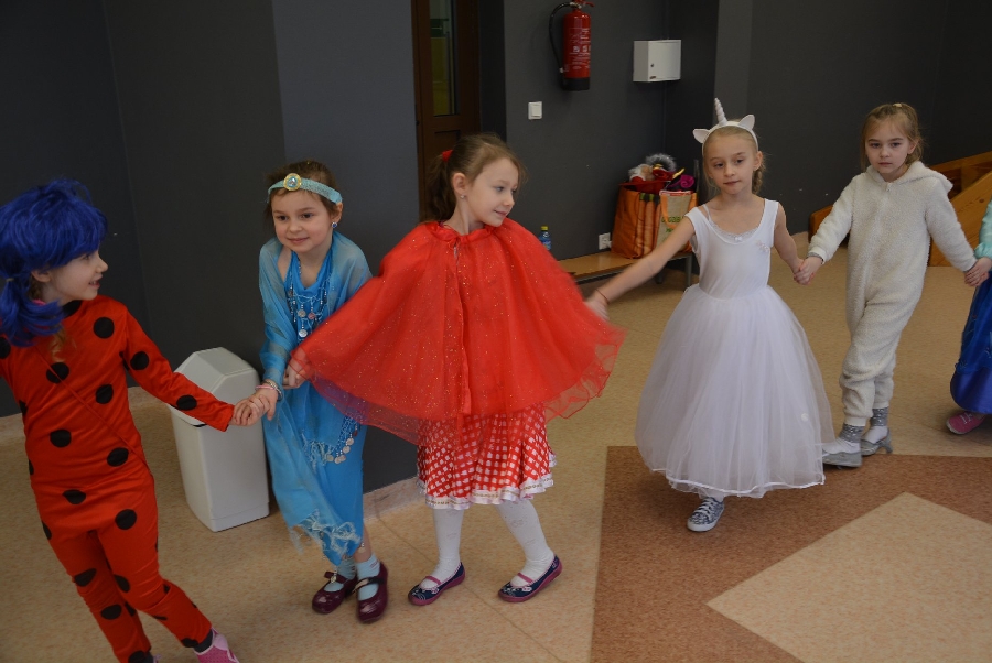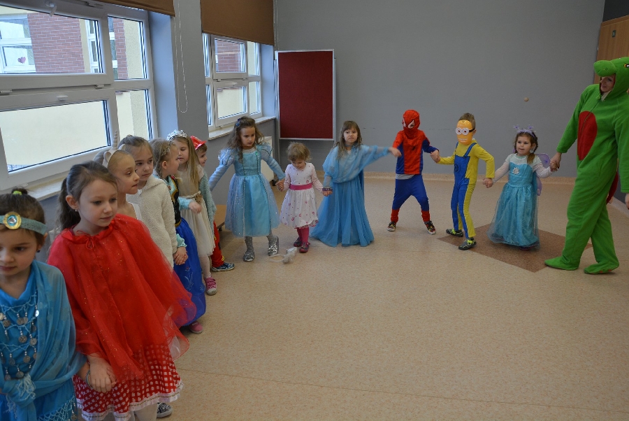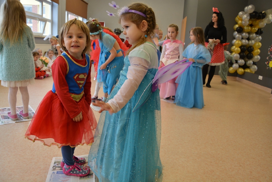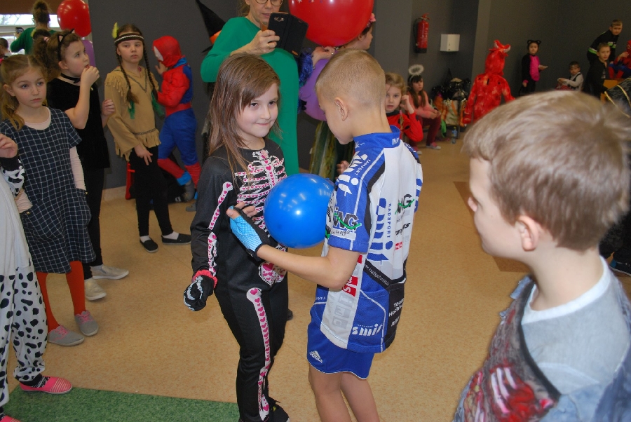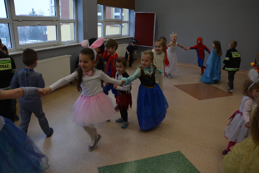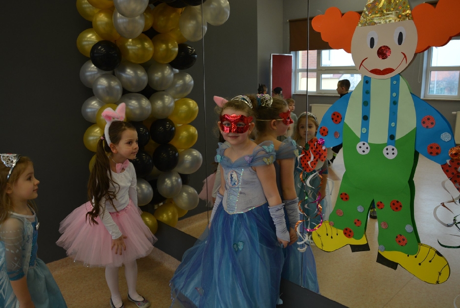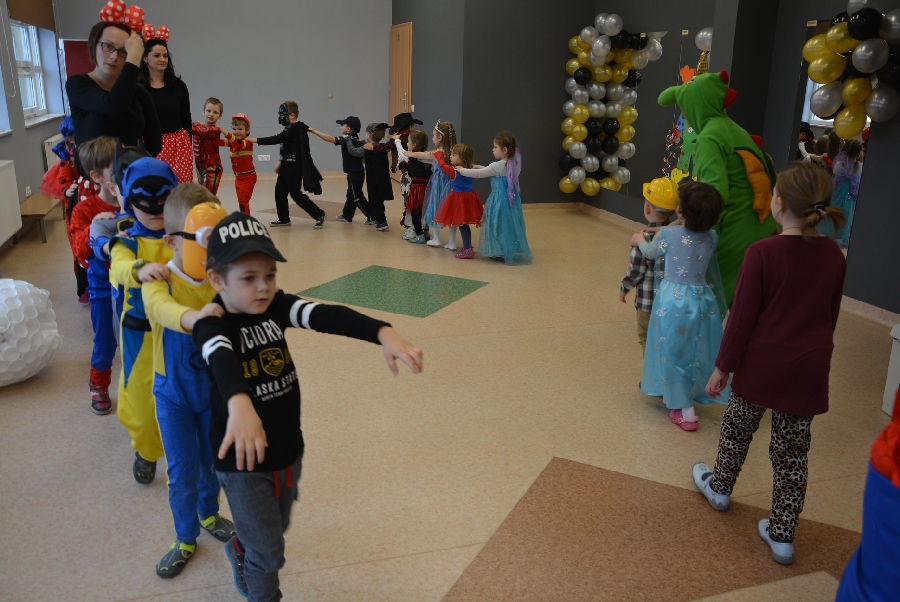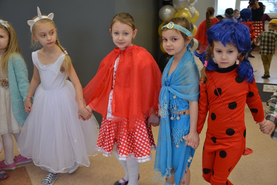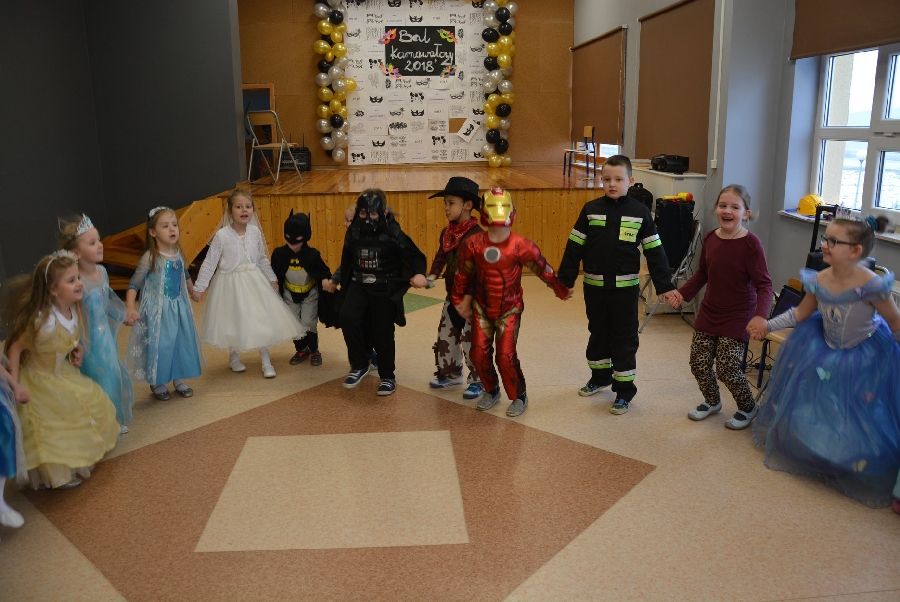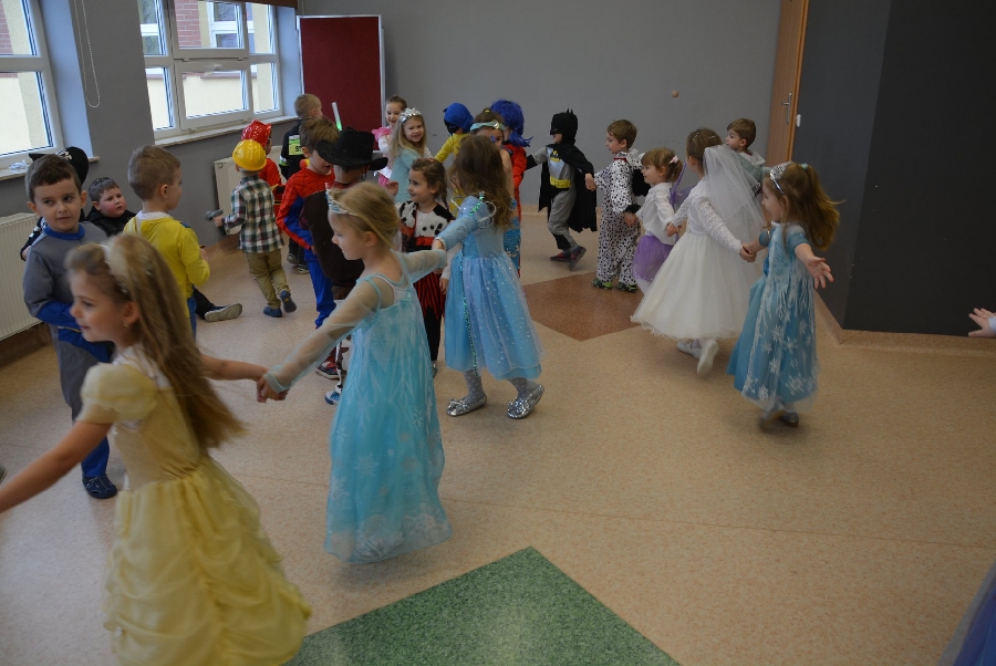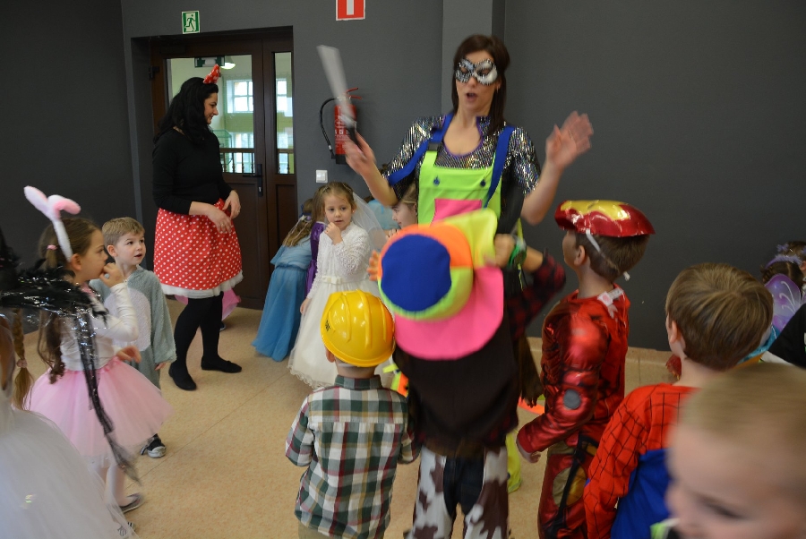Wystrój auli przygotowany przez Panie z przedszkola, wprowadził wszystkich w radosny nastrój oraz zachęcał do wesołej zabawy. W pierwszej kolejności dzieci miały możliwość pozowania do zdjęć grupowych oraz indywidualnych. Na sali podczas pląsów robiło się kolorowo, wszyscy bawili się wesoło, uśmiech nie znikał z twarzy mimo chwilowego zmęczenia. Podczas odpoczynku uczennice z Samorządu Uczniowskiego zachęcały do śpiewania znanych piosenek, prowadziły różne zabawy i sprzedawały ciasteczka z wróżbami. Wiele śmiechu było podczas tańca z balonikiem i na gazecie. Po kilku chwilach wypoczynku, muzyka znowu porwała wszystkich do tańca. Kiedy czas zabawy dobiegł końca, dzieci z żalem opuszczały salę balową. Kolejny bal karnawałowy już za rok!