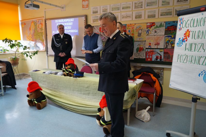 W Zespole Szkół w Męcince 8 marca br. Komendant Gminny OSP Wiesław Gregulski przeprowadził gminne eliminacje do XLI Ogólnopolskiego Turnieju Wiedzy Pożarniczej pn. „Młodzież Zapobiega Pożarom”