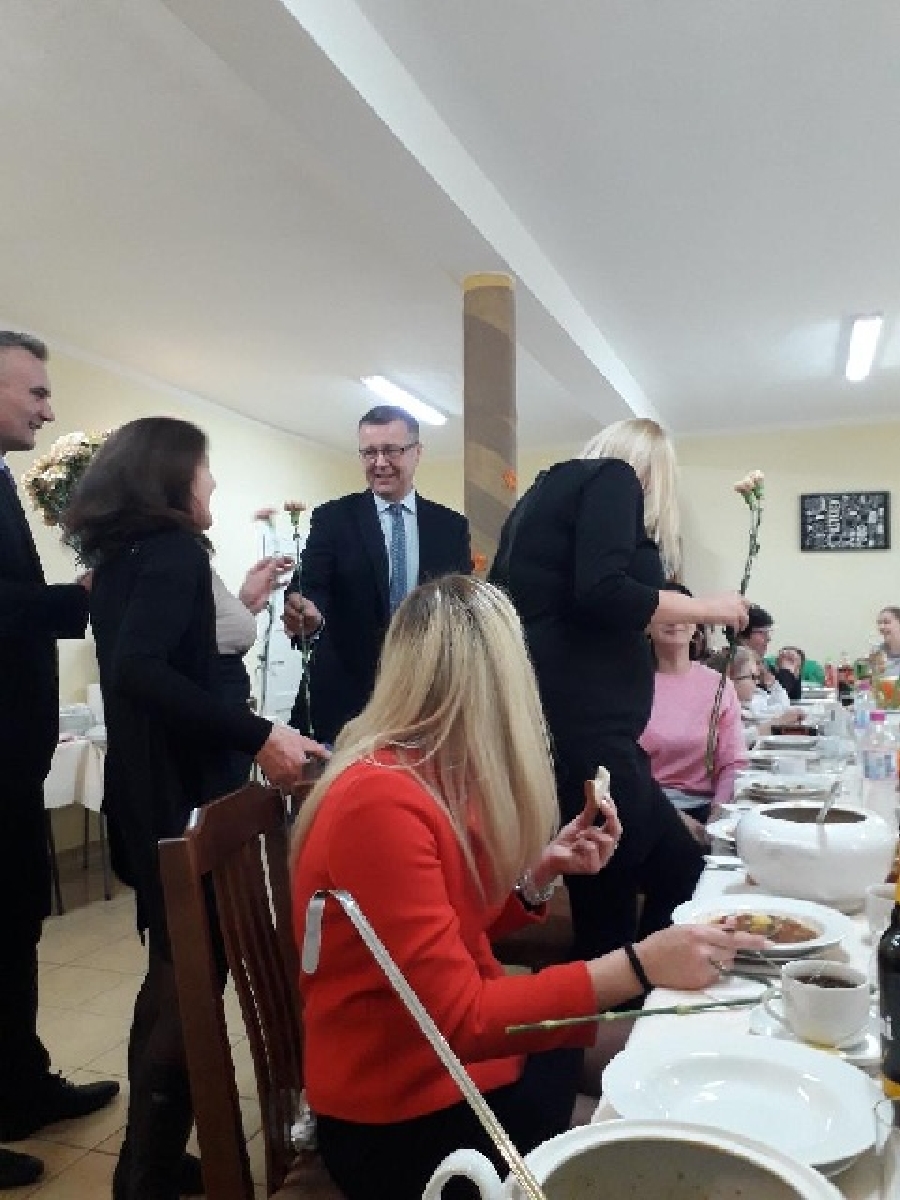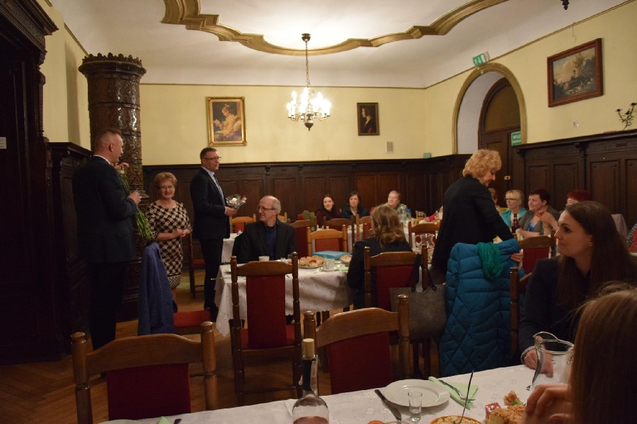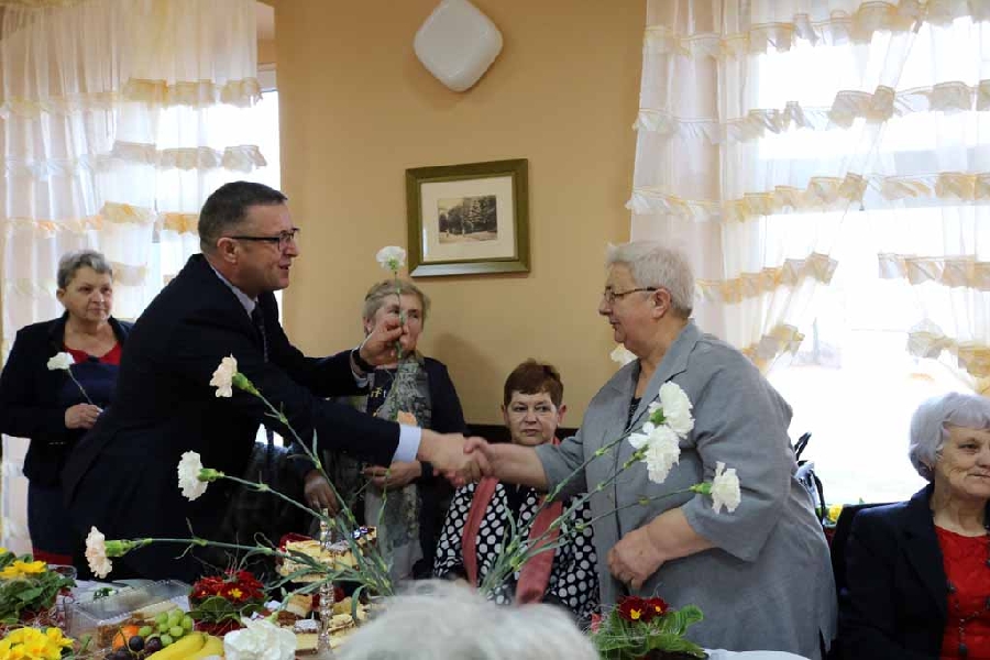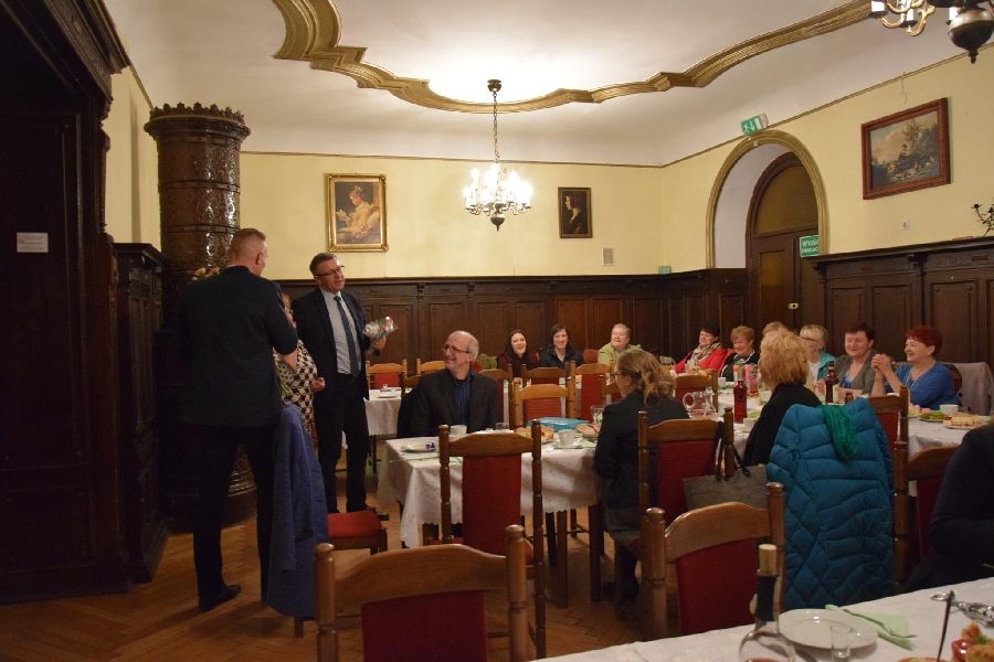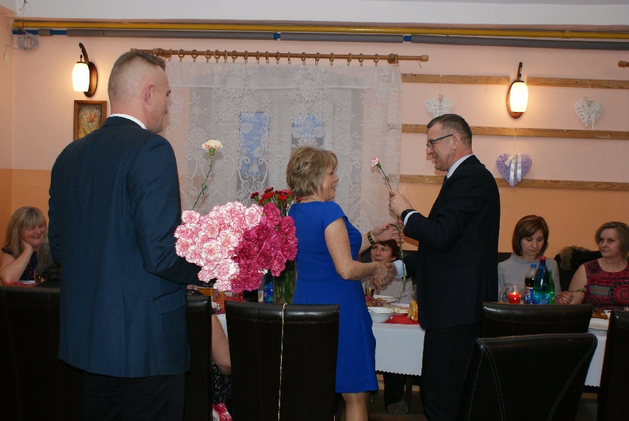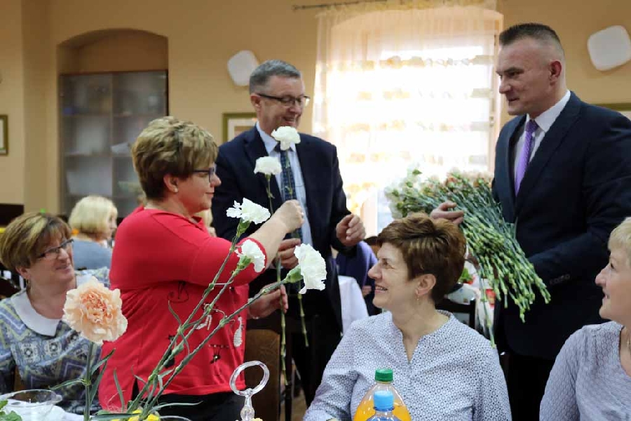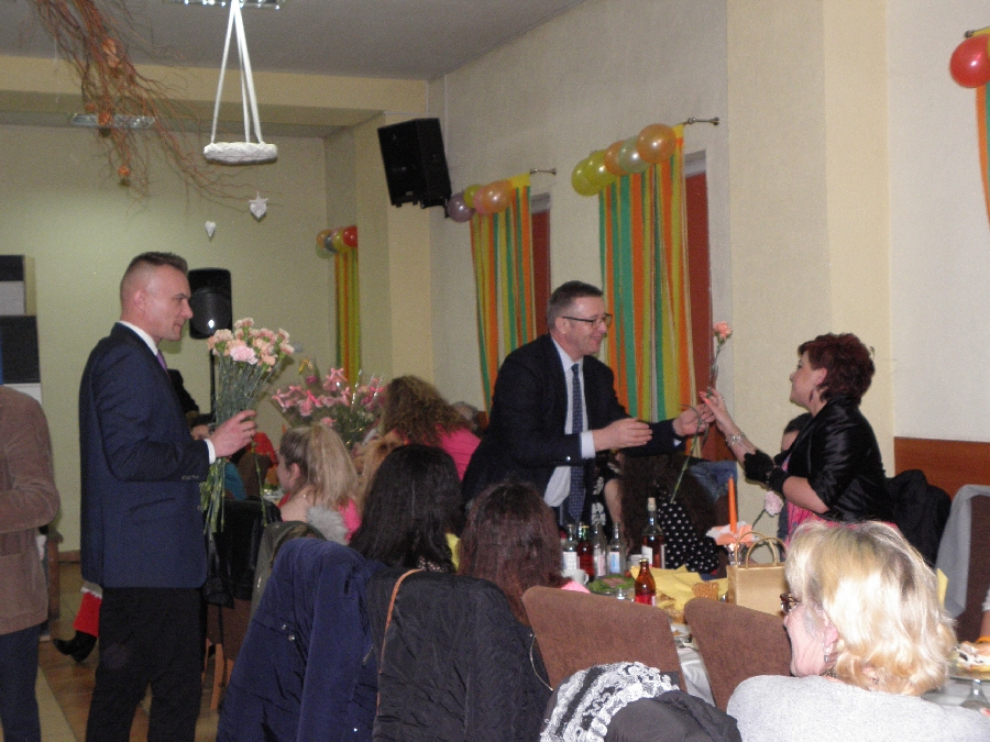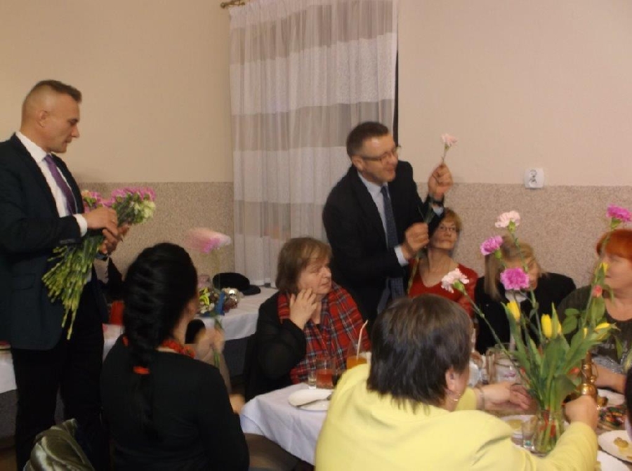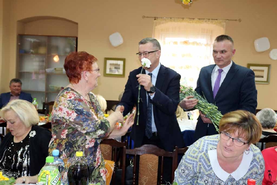 Z życzeniami przybył również Wójt Gminy Męcinka Mirosław Brzozowski wraz z Wiceprzewodniczącym Rady Powiatu Jaworskiego Sylwesterem Rudźcem obdarowując panie kwiatami.