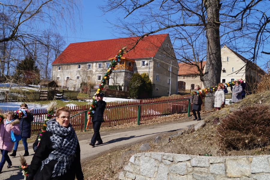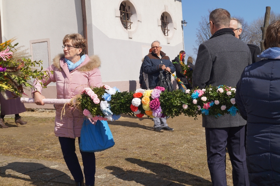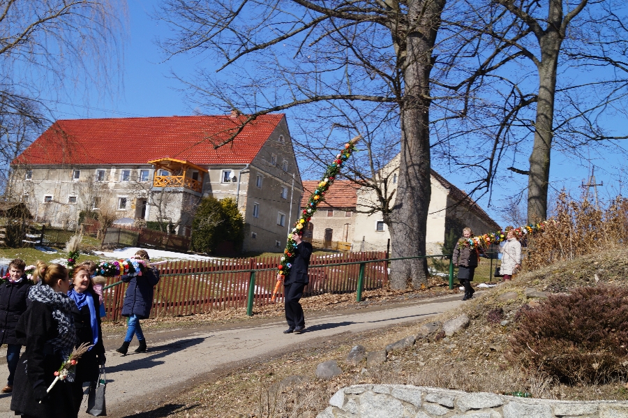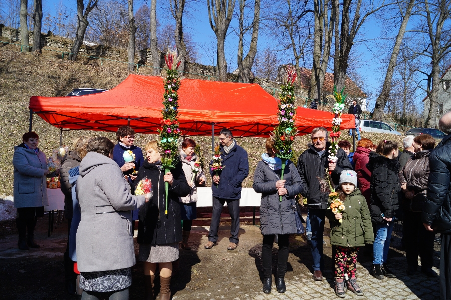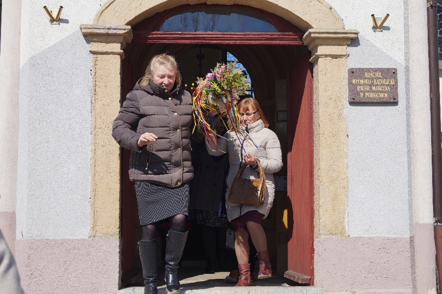 Po raz pierwszy w Pomocnem odbył się konkurs na najpiękniejszą palmę wielkanocną. Wydarzenie poprzedzone było uroczystą Mszą Świętą podczas której Proboszcz Parafii Pomocne ks. Marek Lach dokonał tradycyjnego poświęcenia palm wielkanocnych. Po zakończeniu Eucharystii wszyscy uczestnicy wraz z Wójtem Gminy Męcinka przemaszerowali w korowodzie z palmami na plac przed remizą OSP Pomocne.