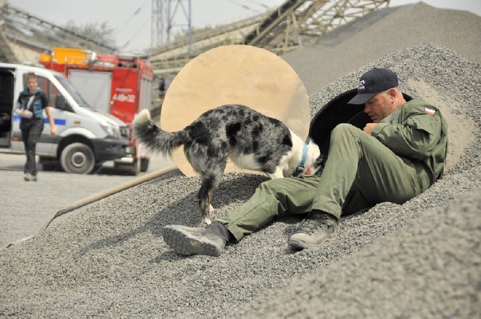 W szkoleniu udział wzięli zarówno ratownicy – przewodnicy psów z Czech, ratownicy KGHM Lubin, instruktorzy psów służbowych z Ośrodka Szkoleń Specjalnych Straży Granicznej w Lubinie, a także ochotnicy z OSP Męcinka.