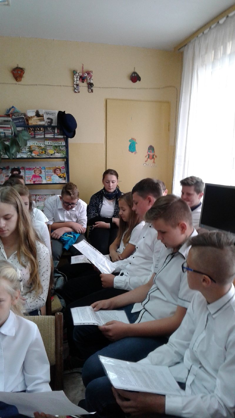 Dnia 13 września br. w Filii GPB w Piotrowicach odbyło się VII Narodowe Czytanie „Przedwiośnia” Stefana Żeromskiego. Czytano rozdział „Podróż przez Rosję. Opowieść o szklanych domach.” Tegoroczna akcja oprócz stałego, głównego celu jakim jest promocja czytelnictwa, była też formą uczczenia jubileuszu 100 – rocznicy odzyskania niepodległości przez Polskę. Uczestnikami tego wydarzenia byli uczniowie klas VIII oraz zaproszeni goście: Wójt Gminy Mirosław Brzozowski, Dyrektor Zespołu Szkolno-Przedszkolnego Jolanta Cisoń, a także dwóch uczniów klasy II (Zuzia Jarmakowicz i Wojtek Radomski). Cała inicjatywa została zorganizowana przez nauczyciela szkolnej biblioteki Bożenę Moderacką, kierownika GBP w Męcince Elżbietę Chodor oraz przy współudziale polonistów Marii Miazgi i Niny Wikrorowskiej. Aby przybliżyć postać marszałka Józefa Piłsudzkiego nauczycielka historii Maria Miazga wraz z uczniami przygotowała wywiad dotyczący życia twórcy niepodległości.