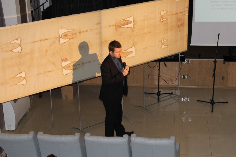 Organizatorami tego spotkania byli Wójt Gminy Męcinka oraz Sanktuarium św. Jana Pawła II w Krakowie. Prezentację poprowadził Paweł Woźniak – historyk, przedstawiciel Uniwersytetu Jagiellońskiego przybliżając niezwykłą historię Całunu.