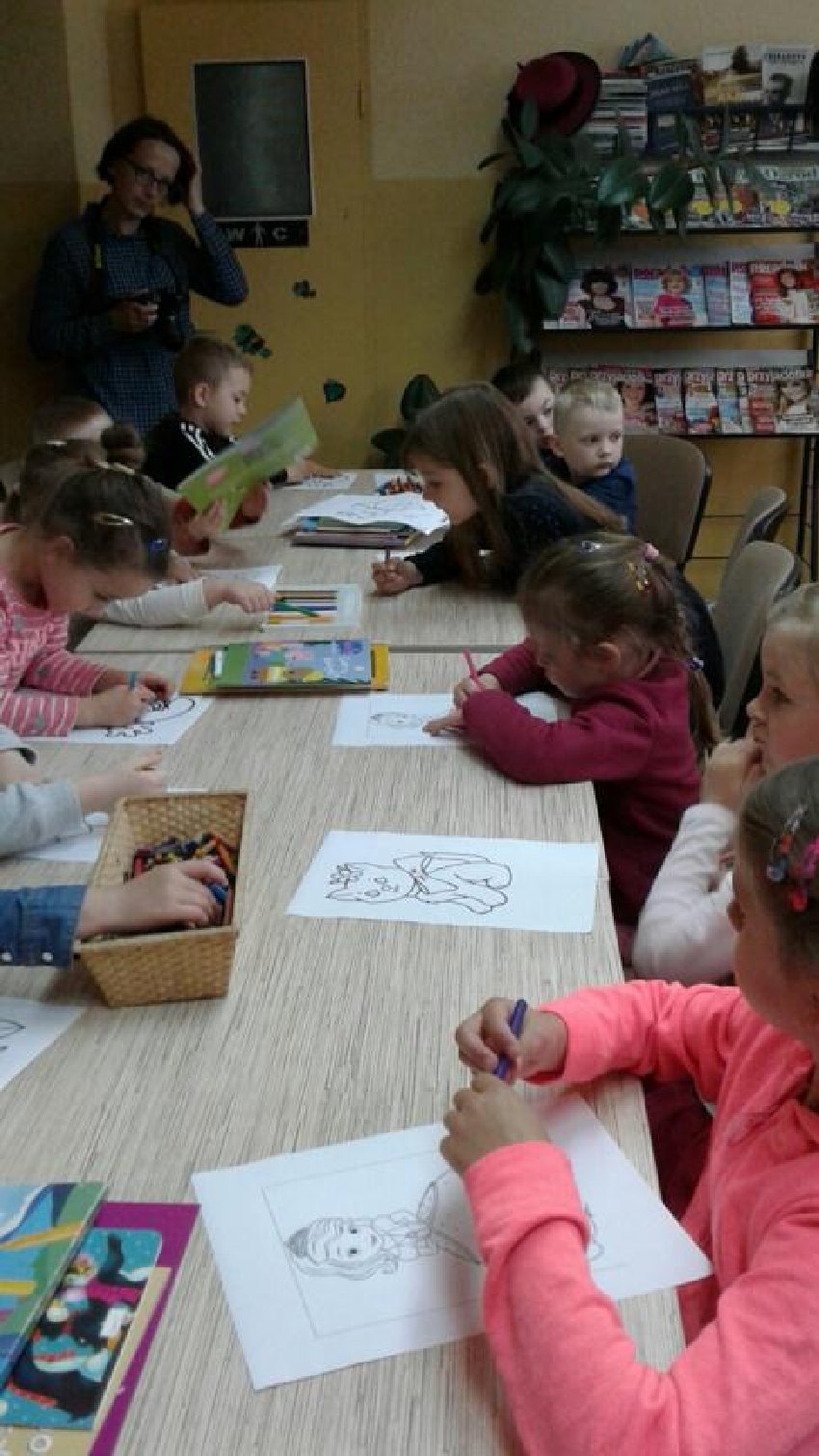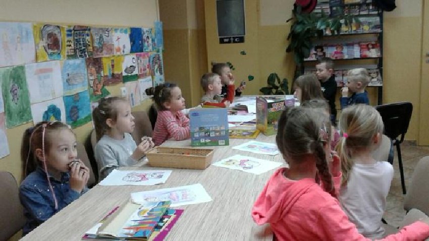 W Filii GBP w Piotrowicach i w Pomocnem dzieci z przedszkoli po raz pierwszy odwiedziły biblioteki, czytano im bajki do których malowały ilustracje oraz poczęstowano ich słodyczami.